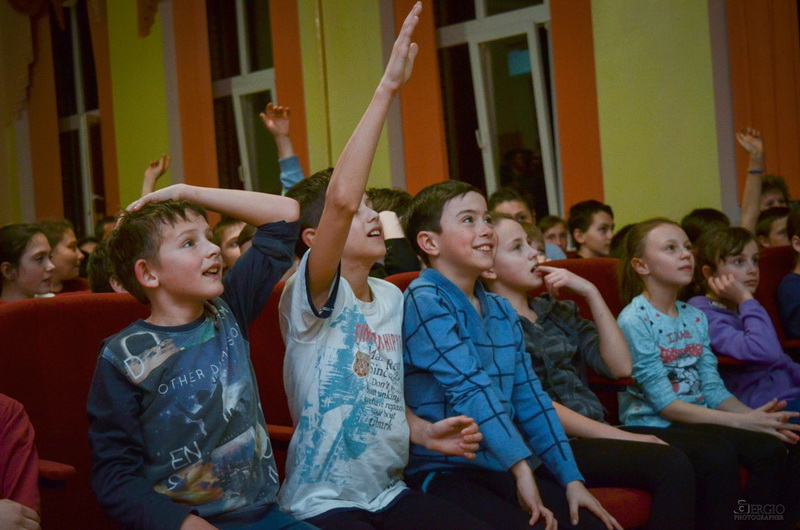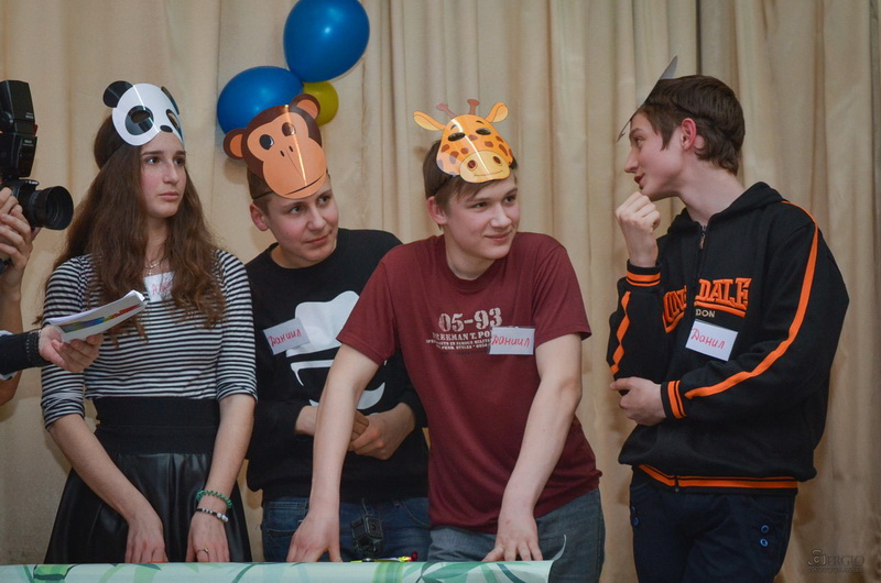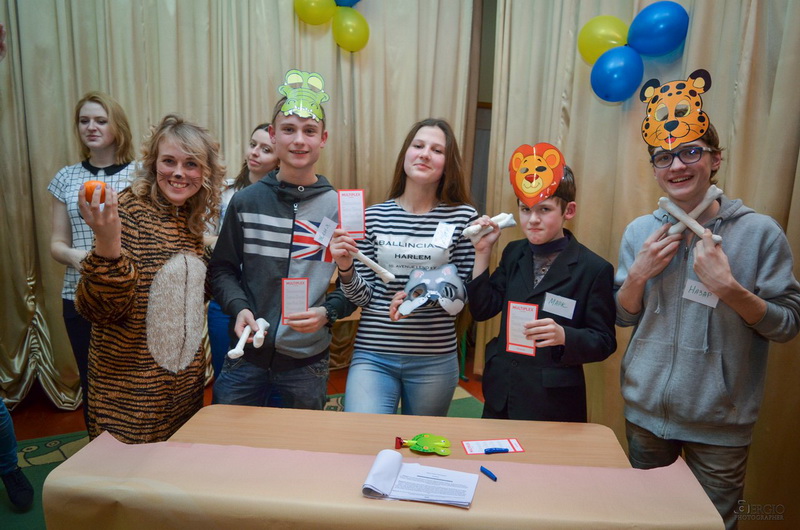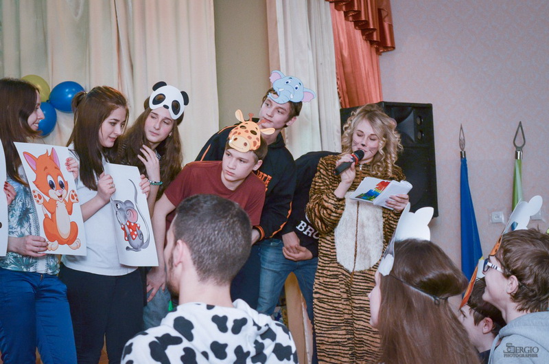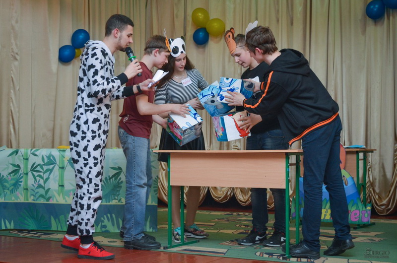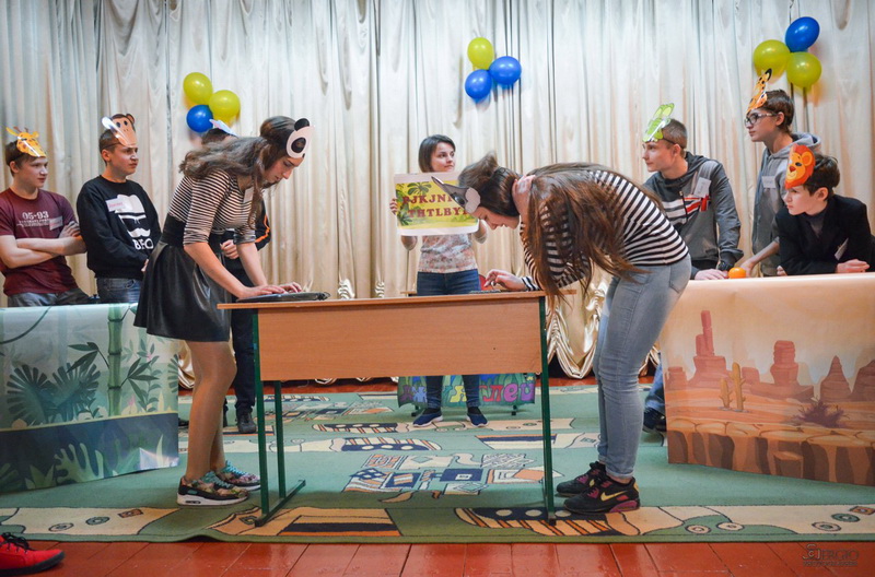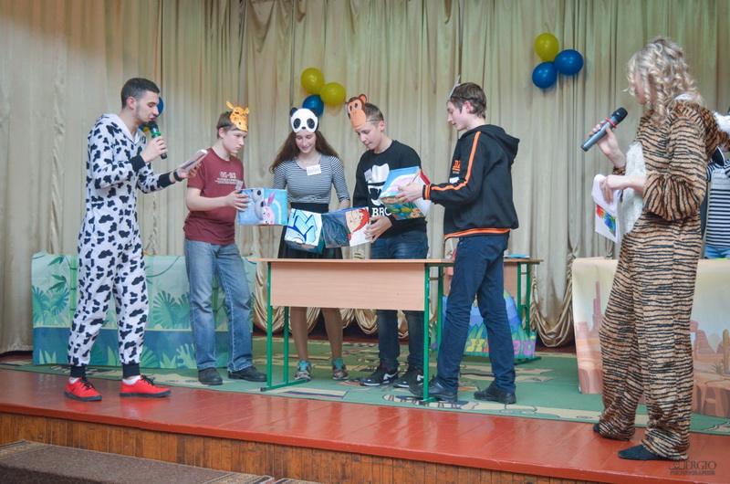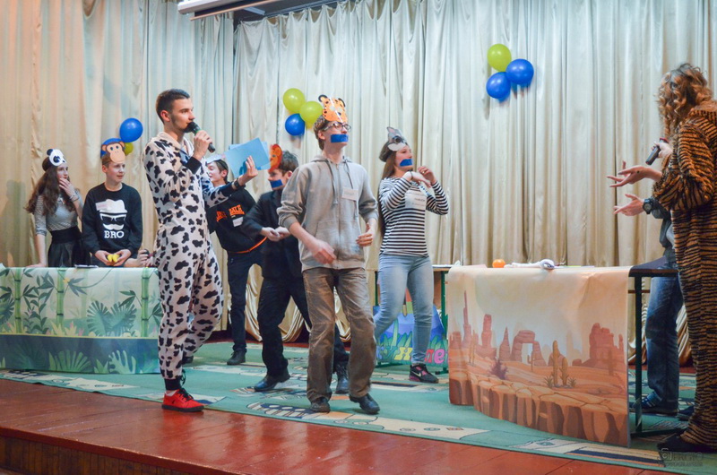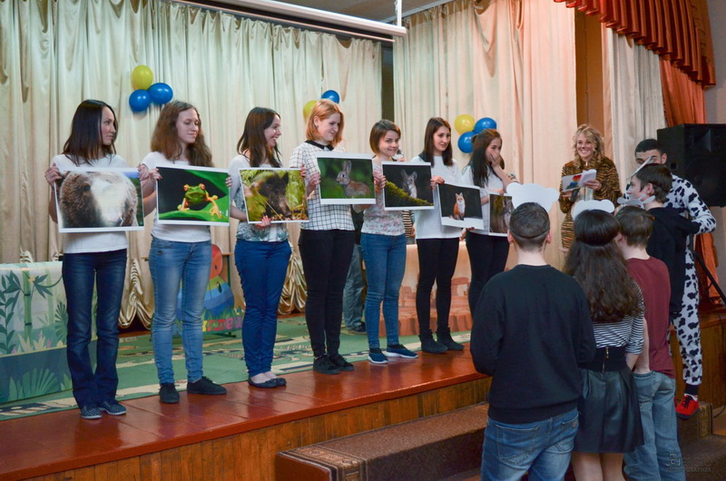 Шляхом відгадування загадок про тварин ведучі обрали учасників для команд «Травоїдні» та «Хижаки» із юних глядачів у актовій залі школи-інтернату.