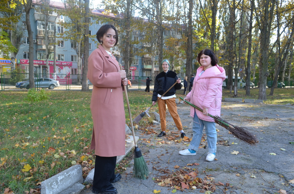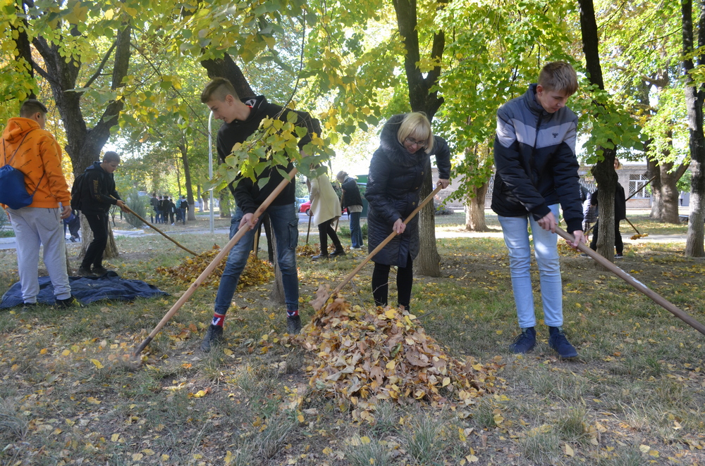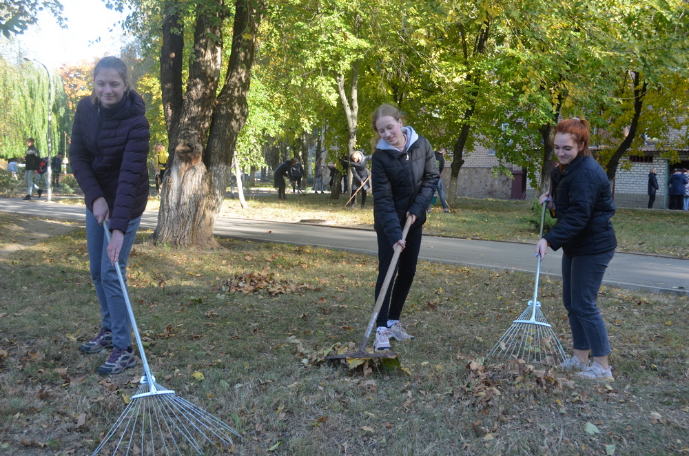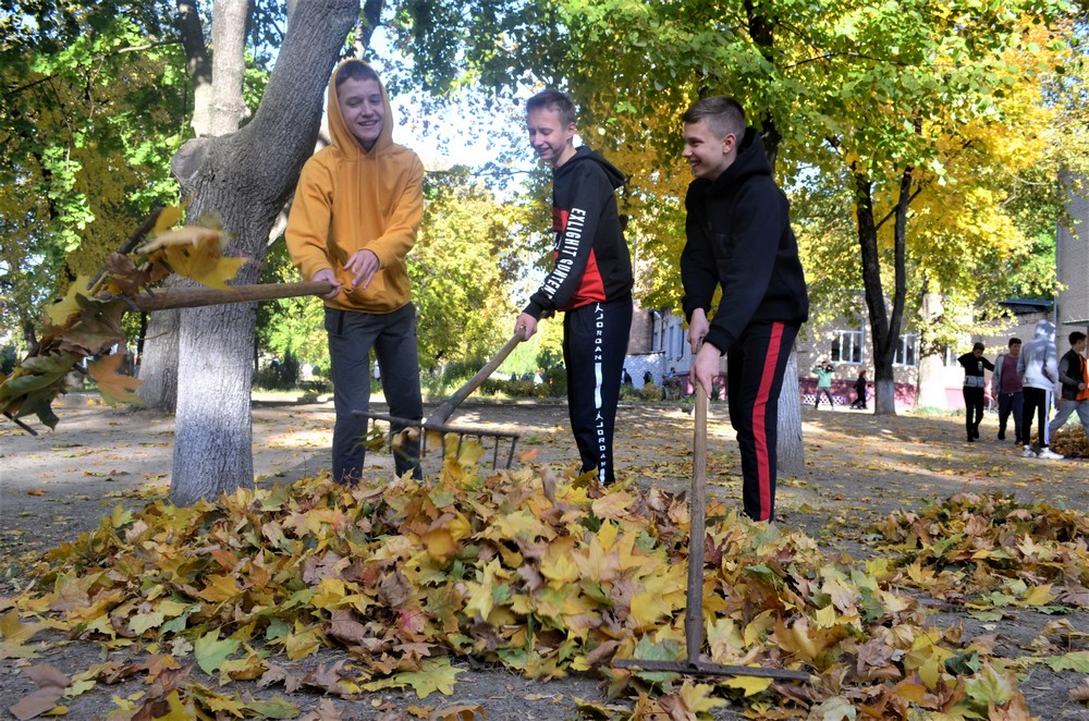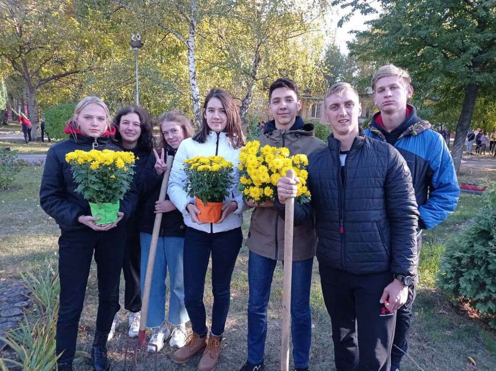 Осінь – пора падолисту. Тож озброївшись граблями, мітлами та лопатами, влаштували прибирання на подвір'ї ліцею. Упорядкували трояндові клумби. Висадили також хризантеми, жар яких не згасатиме аж до початку перших морозів.