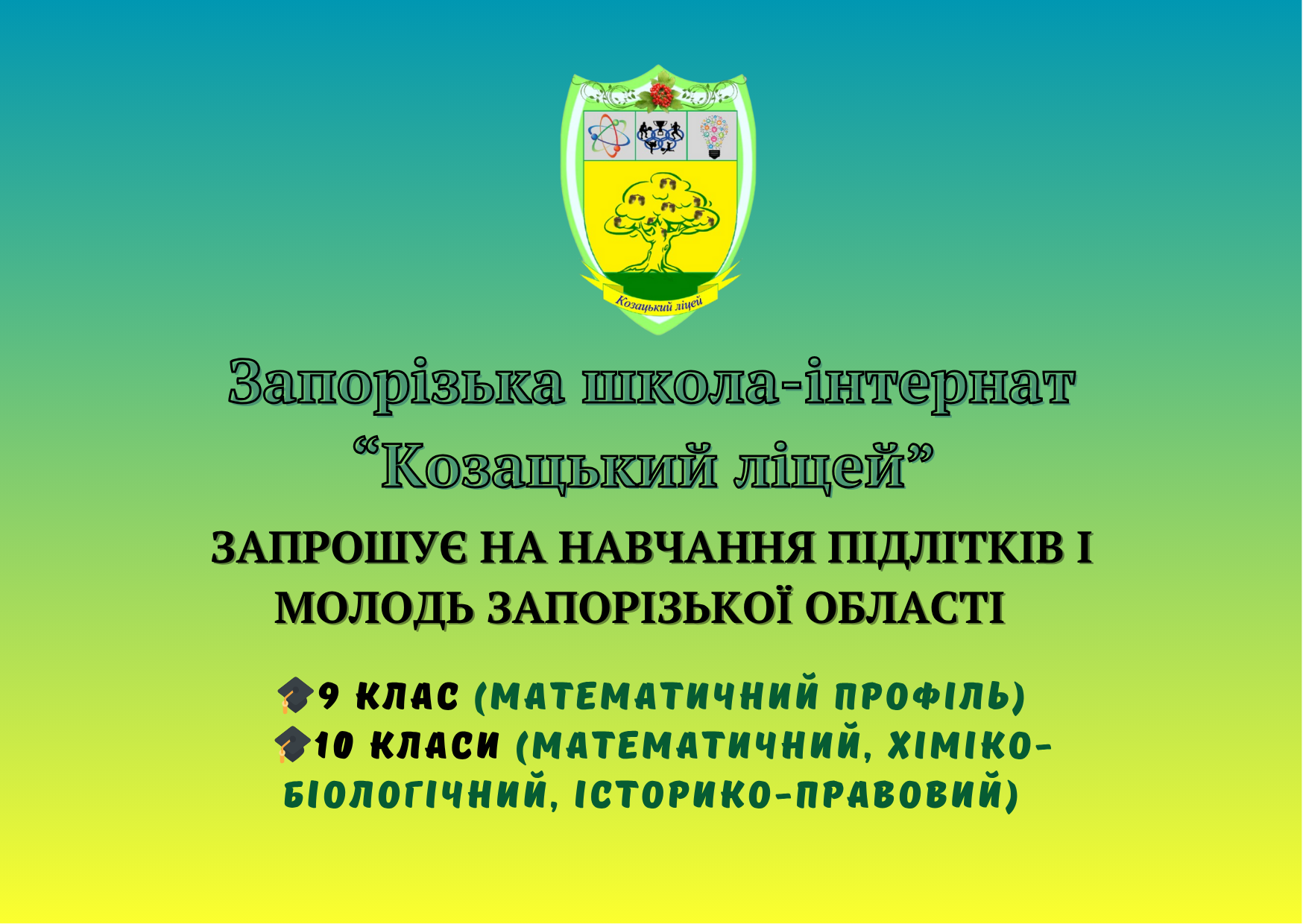 Запорізька школа-інтернат «Козацький ліцей» оголошує додатковий набір учнів!