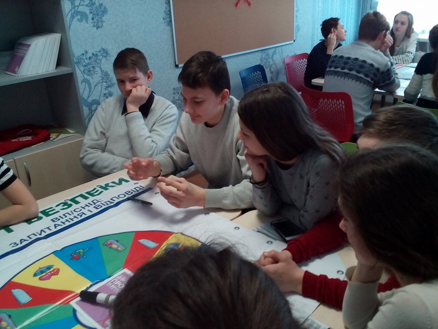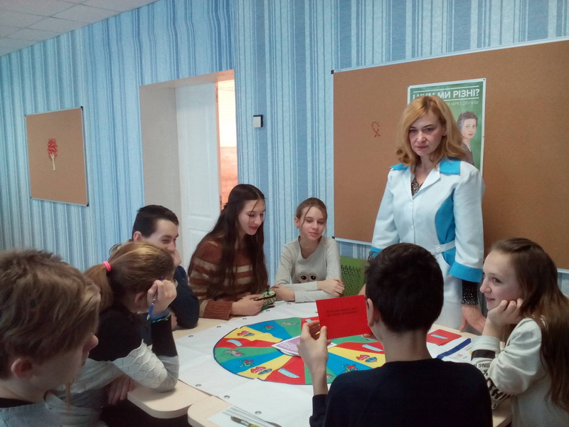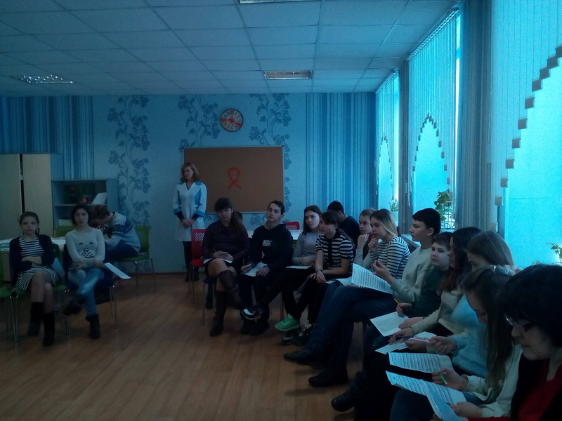 Для учнів 8-А та 8-Б класів було проведено інформативний лекторій щодо загальних питань, які стосуються захворювання на ВІЛ. Після знайомства з теоретичною інформацією підлітки об’єдналися у команди та працювали з матеріалом, націленим на опанування навичками безпечної для життя і здоров’я поведінки.
