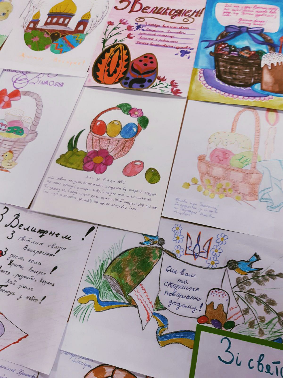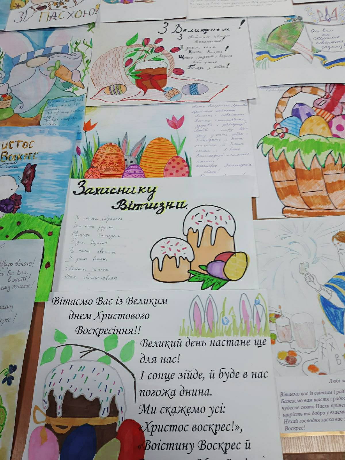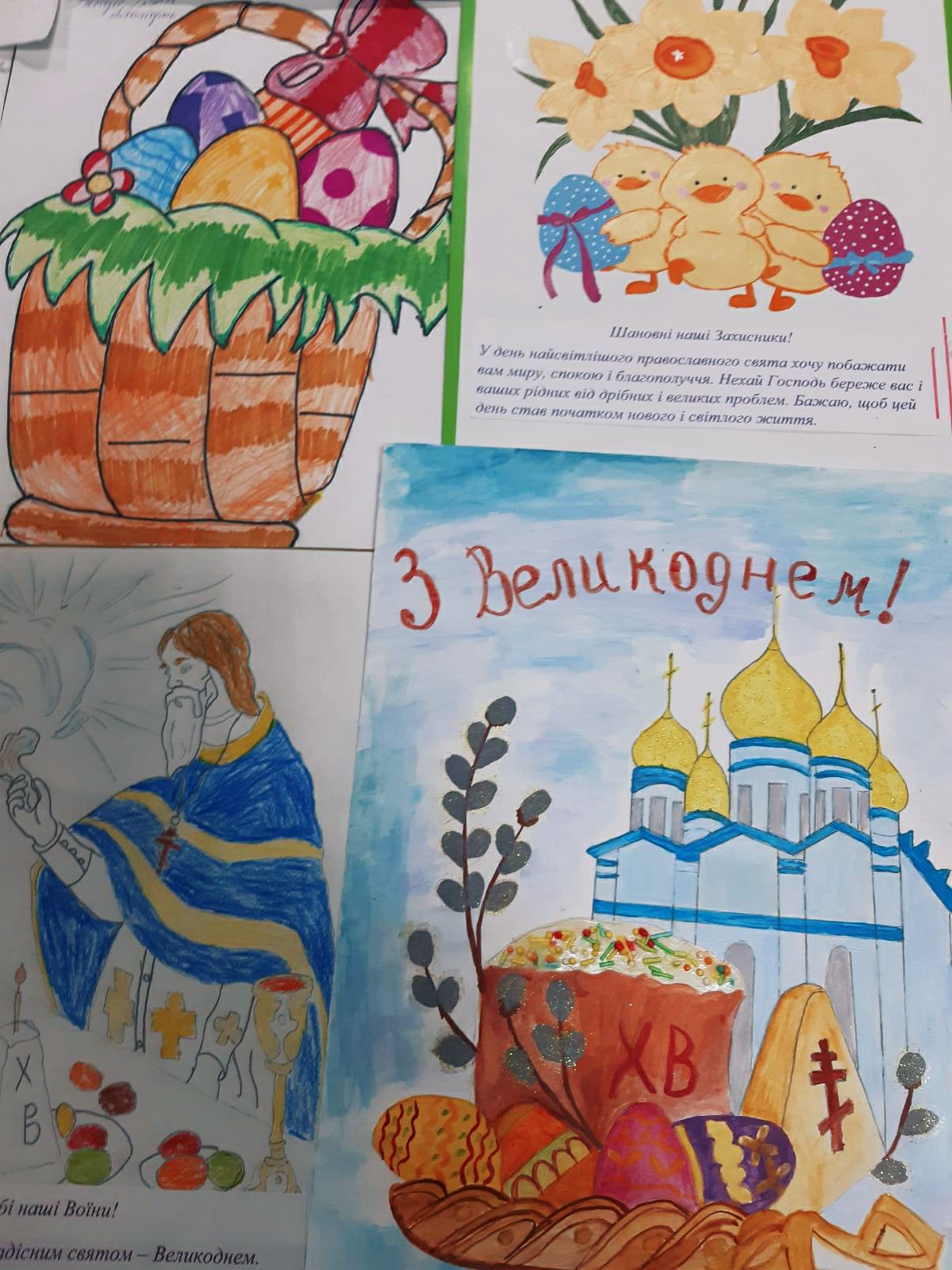 Сподіваємося, що творчі роботи ліцеїстів і вітальні листівки з найкращими побажаннями з нагоди прийдешнього свята Великодня піднімуть настрій, додадуть віри та сил любим захисникам.