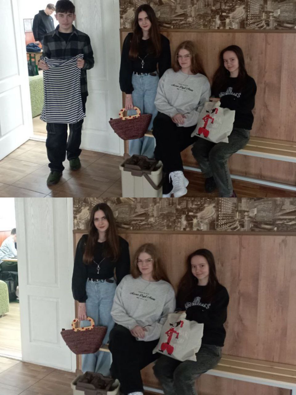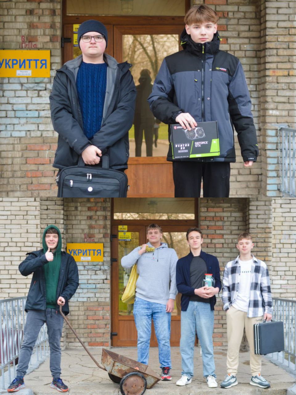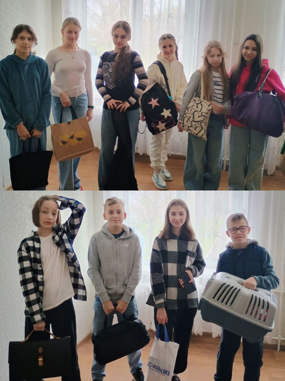 Зранку на уроки коридорами ліцею крокували здобувачі освіти з найнесподіванішими замінниками ранців. Вечірні сумочки, яскраві торбинки, стильні шопери, практичні термосумки, картонні коробки, зручні лотки, валізи на коліщатках, місткі дорожні сумки, чохли для гітар, величезні валізи, бутилі, відра, кошики з супермаркету, навіть старий бабусин возик – чого тільки не несли маленькі та юні винахідники до своїх класів!