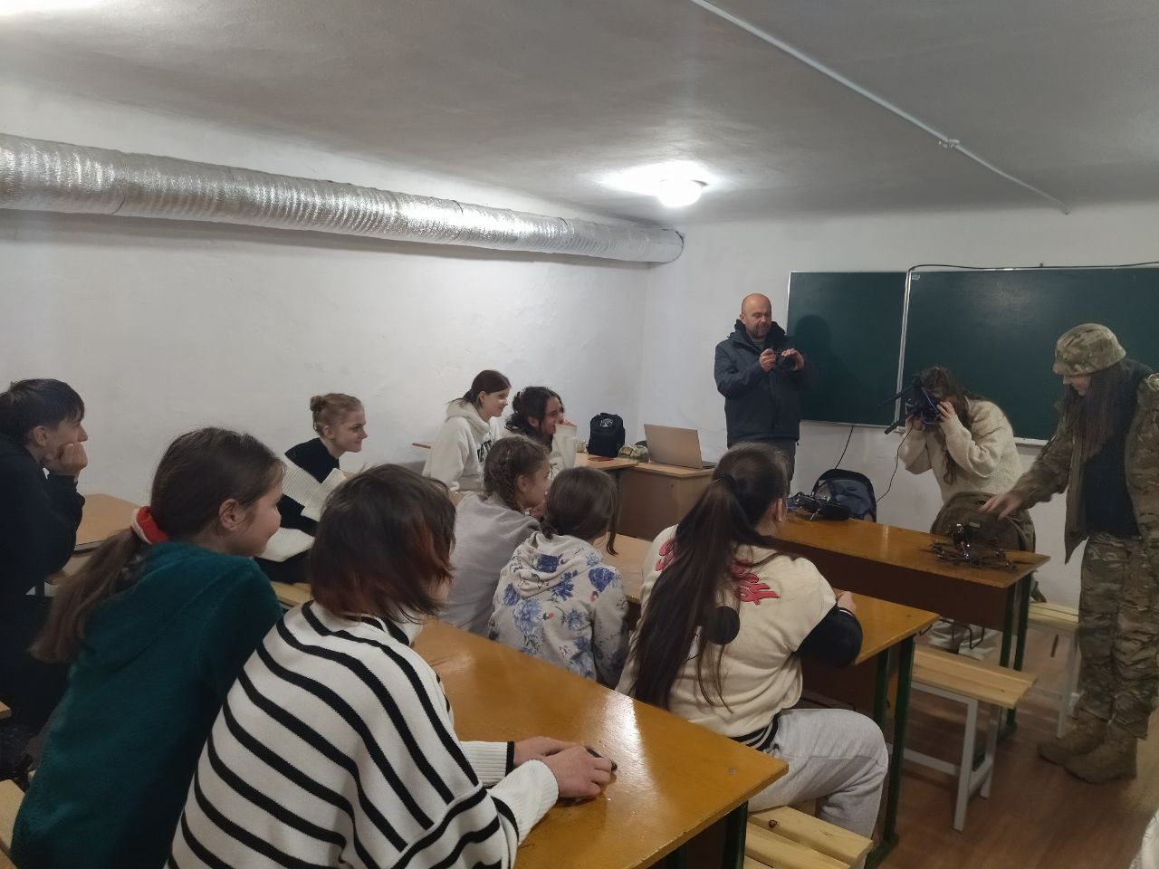Нагадали здобувачам освіти правила мінної безпеки. А родзинкою зустрічі стала демонстрація роботи дронів і розповідь про їхню структуру.