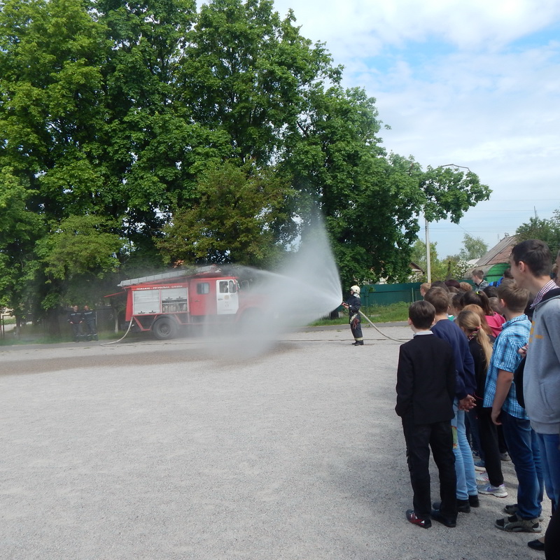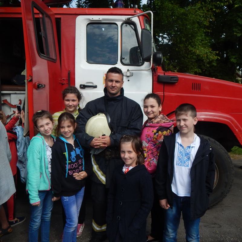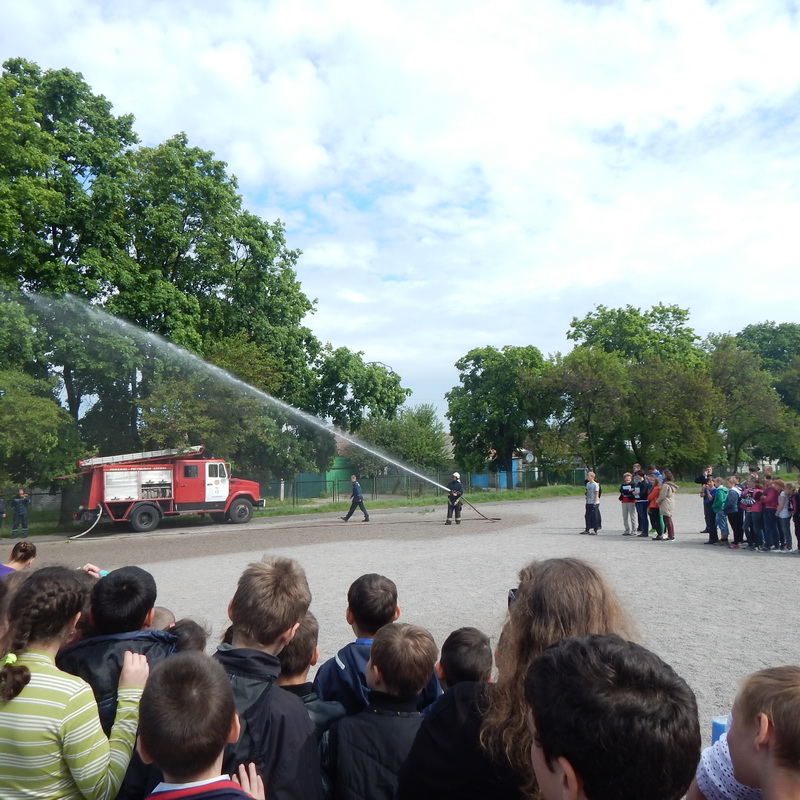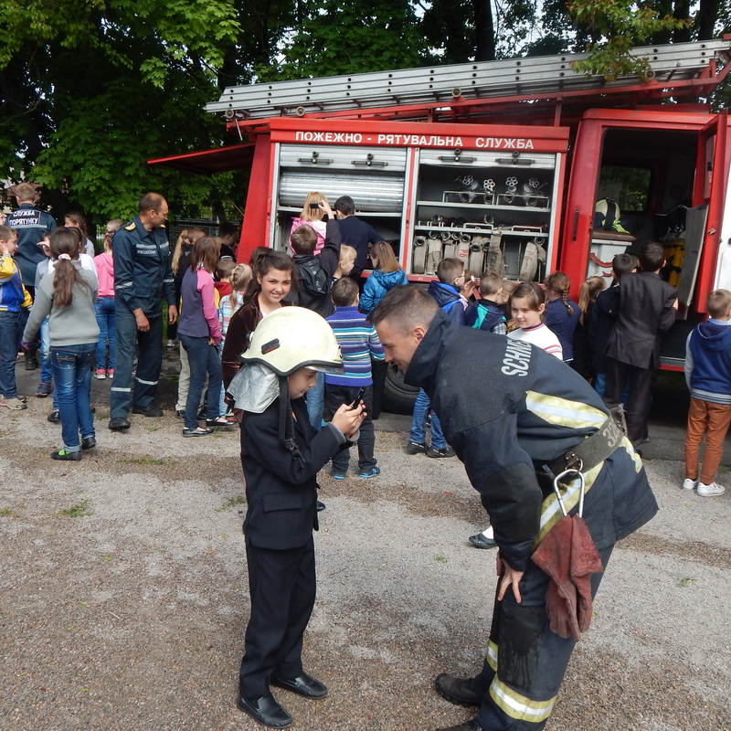 На захід до Дня цивільного захисту запросили представників пожежної частини №3 Дніпровського району м. Запоріжжя ГУ МНС України в Запоріжській області на чолі з Петуніном Денисом Вячеславовичем. Рятівники продемонстрували дітям на дії елементи роботи пожежного автомобіля та розказали про особливості своєї роботи у випадку надзвичайних ситуацій.