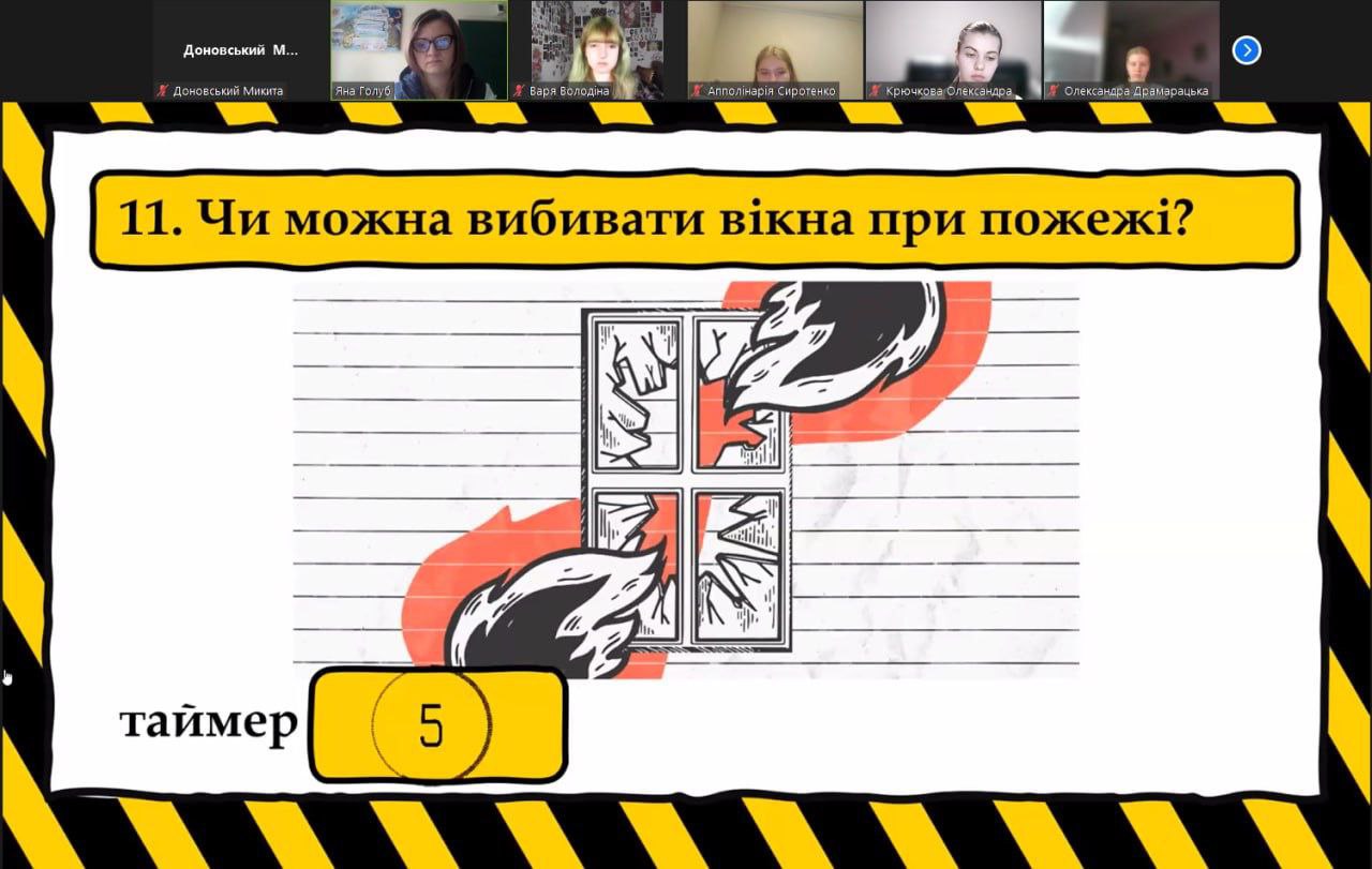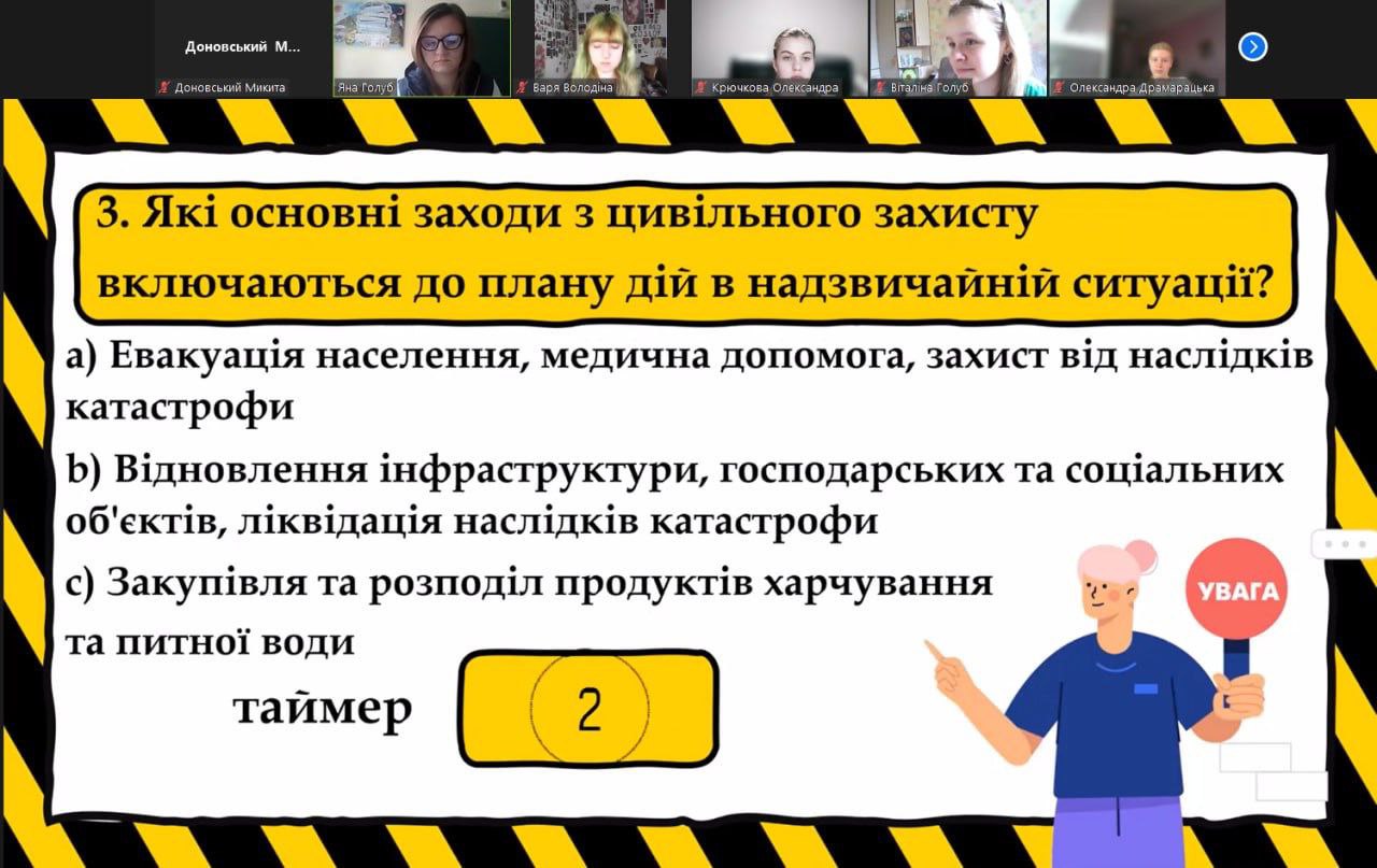 26 квітня, у День цивільного захисту, відбулося зібрання великого кола на тему «Знати і вміти», під час якого практично відпрацювали дії за планом реагування у надзвичайних ситуаціях (порядок евакуації за сигналом оповіщення ЦЗ, правила користування засобами колективного та індивідуального захисту тощо); провели кінопокази «Антологія катастроф», «Випадковий свідок», «Катастрофи тижня».