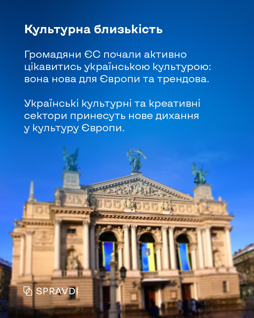 Вступ України до ЄС вигідний не тільки українцям, але і самому Євросоюзу. І більшість громадян країн ЄС це чудово розуміють. Вони достатньо відкриті до ідеї приєднання України, а теза про те, що ЄС не зацікавлений у приєднанні - це «вкид», який поширює російська пропаганда в країнах ЄС.