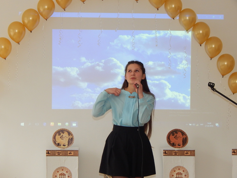 Учениця 11-Б класу, голова дитячо-юнацької організації «КІШ» Острівна Анастасія виступила з авторською філософською прозою «Чому ми часто дивимося в небо?» (Керівник: Філоненко Юлія Володимирівна).