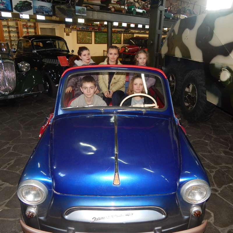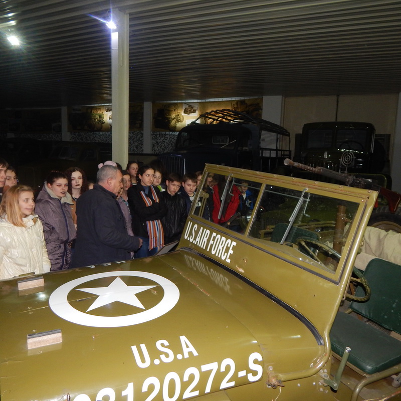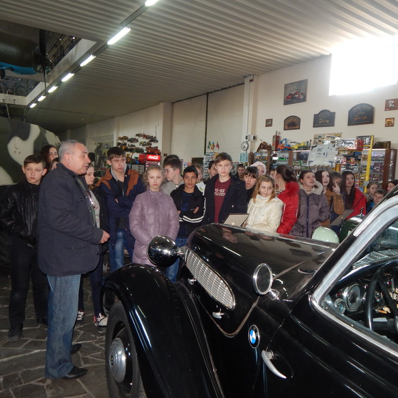 Зустрічав гостей співробітник музею техніки Мушер Семен Ісакович, який розказав ліцеїстам про колекцію автомобілів, що нараховує більше 60 видів техніки кінця 20-х рр. – 70-х рр. ХХ ст. Діти з великим захопленням розглядали експонати довоєнних автомобілів і техніки часів ІІ Світової війни, американські автівки, вантажівки, колекцію післявоєнного транспорту. Цікавою була виставка мототехніки, різноманітних велосипедів, сучасної зброї та зброї часів ІІ Світової війни від артилерійських установок до протипіхотних кулеметів.