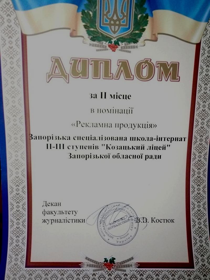 Свої роботи в номінаціях «Радіопрограма», «Мультимедійна інтернет-публікація» та «Рекламна продукція» представили учні Запорізької школи-інтернату «Козацький ліцей».