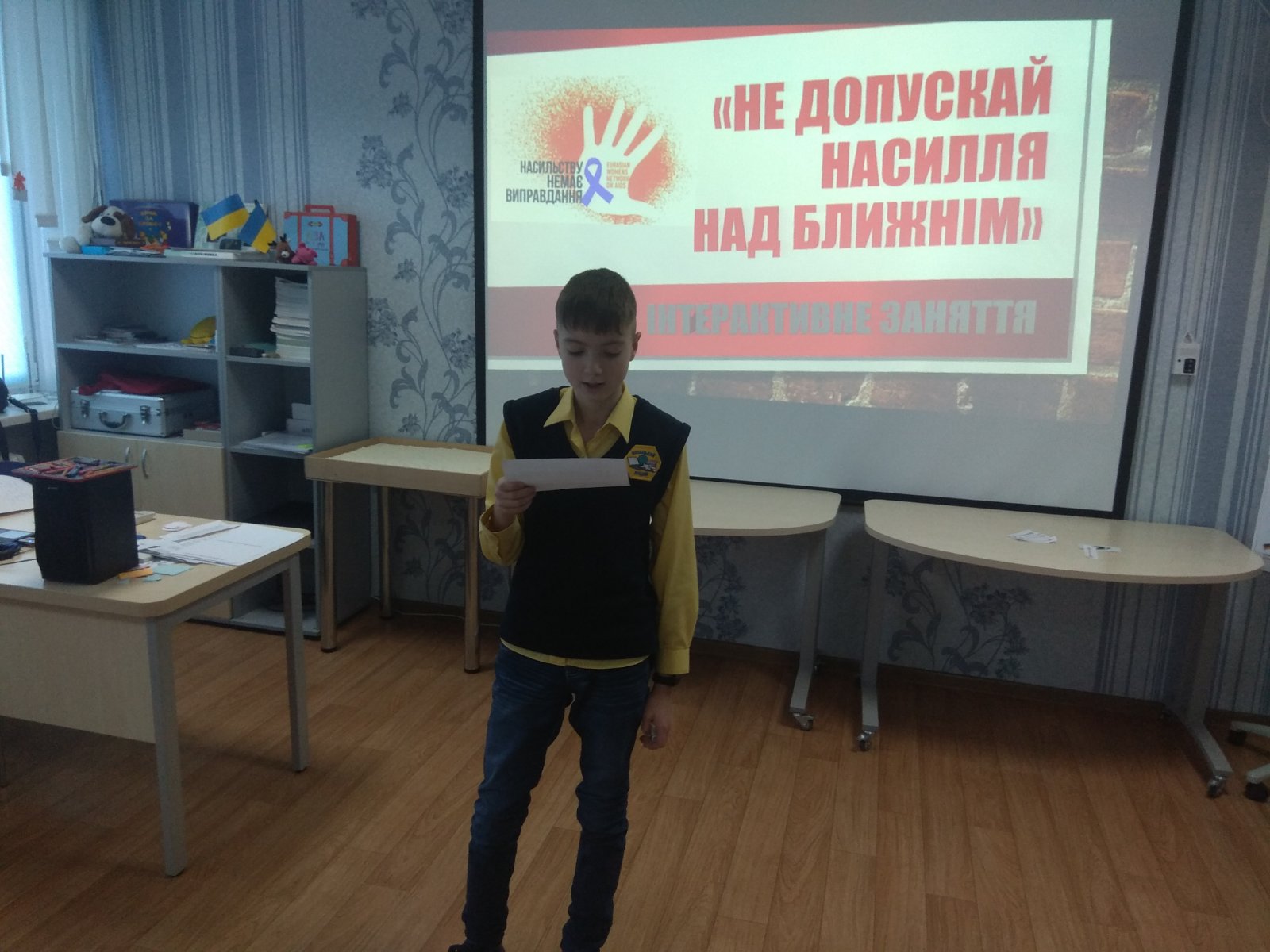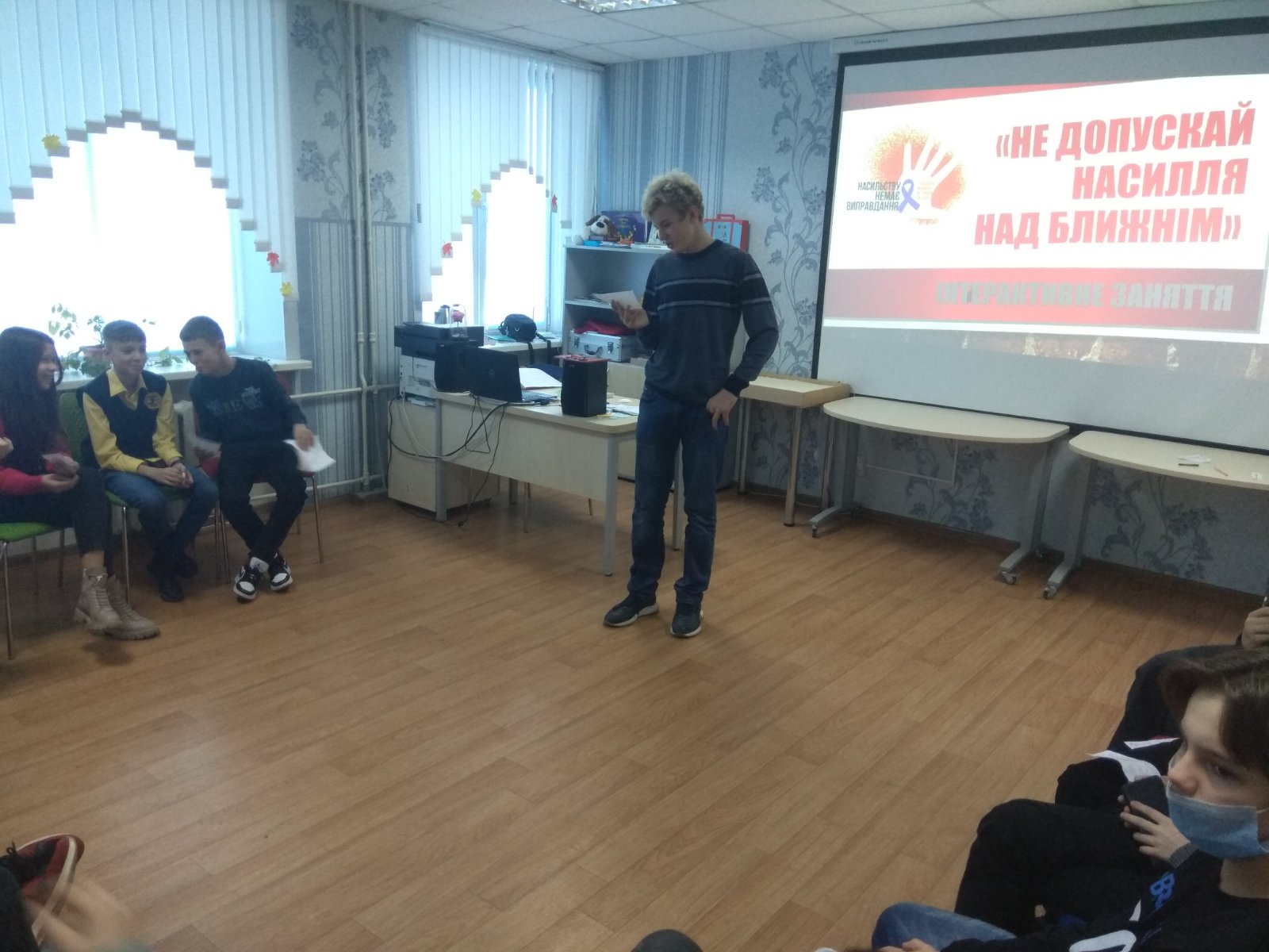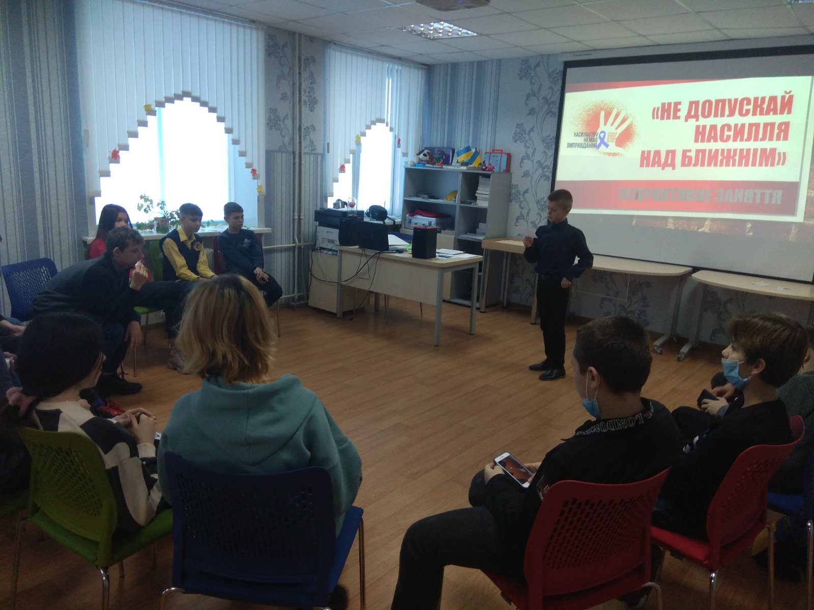 30 листопада 2021 року у межах акції «16 днів проти насильства» соціальний педагог Яна Галич провела інтерактивне заняття «Не допускай насилля над ближнім!» для учнів 7-х класів Запорізького Козацького ліцею.