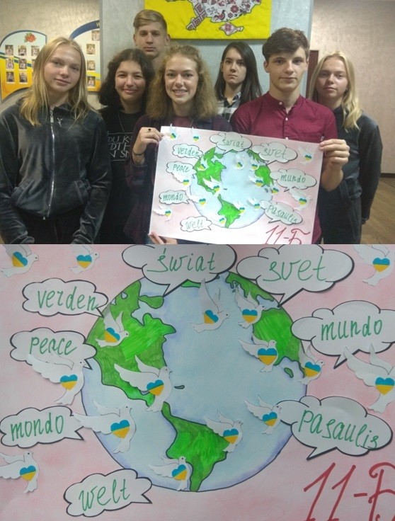 Креативна молодь створила малюнок-аплікацію на тему «Ми за мир у всьому світі!» Зняли також тематичний відеоролик, мета якого - привернути увагу до проблем миру на Землі та нагадати, що майбутнє світу залежить від справ і думок людини.