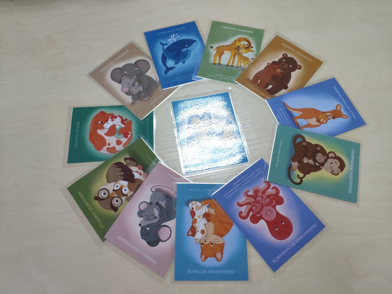 Під час гри «Обійманці» від відомої дитячої психологині Світлани Ройз діти вчилися повертати емоційний комфорт через тактильні відчуття. У грі зібрано картки з різними видами обіймів, які допомагають впоратися зі страхом і тривогою, пережити травми, пов’язані з війною.