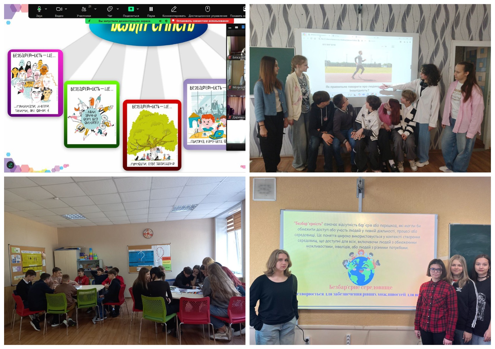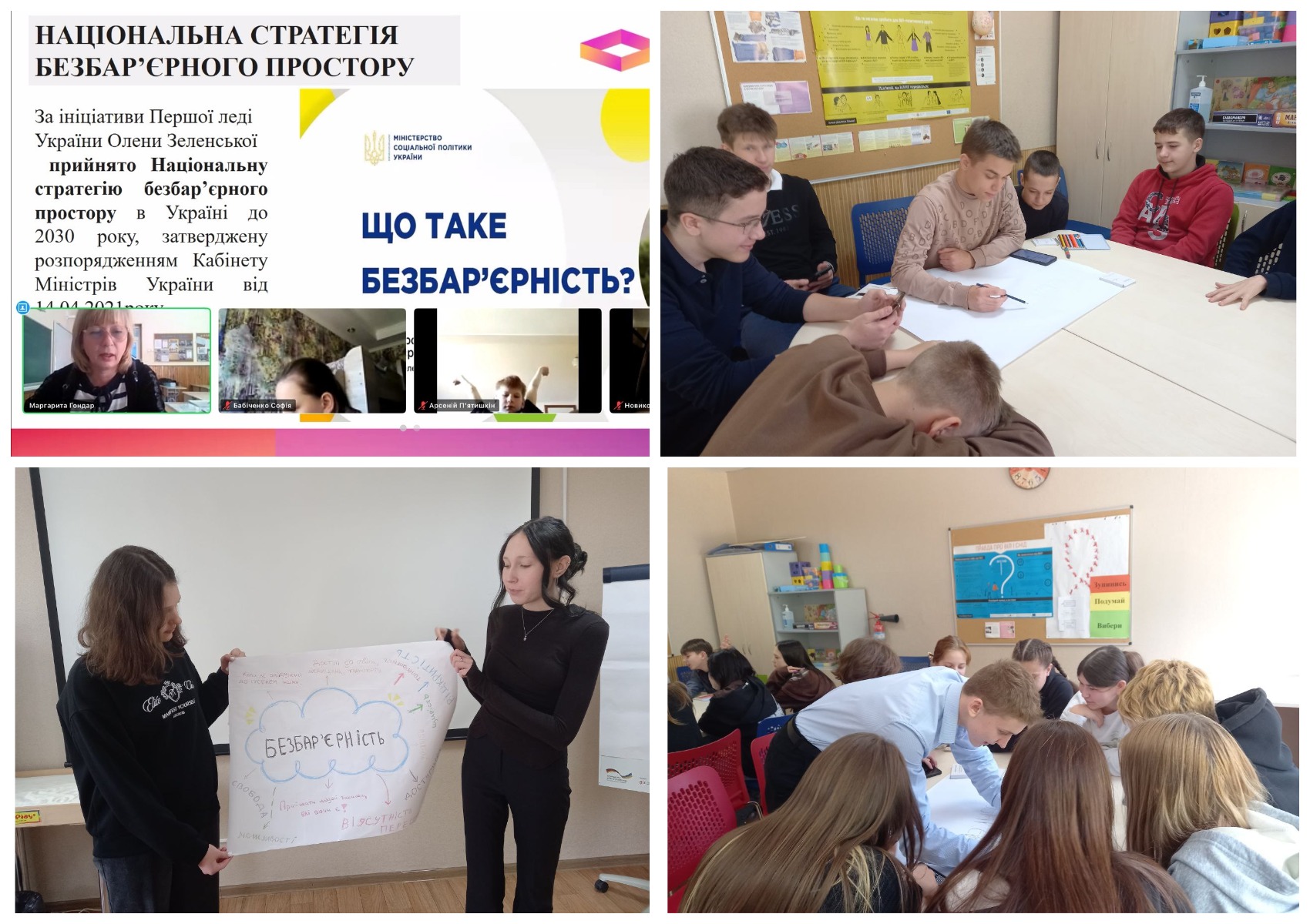 У межах Тижня у Козацькому ліцеї відбулися тематичні Години безбар’єрності, під час яких учні познайомилися з основними принципами інклюзії, поваги, толерантності та відкритості. Зокрема, здобувачі освіти працювали з матеріалами Довідника безбар’єрності, виконували завдання вікторини, тести, брали участь у командних іграх та дискусіях.