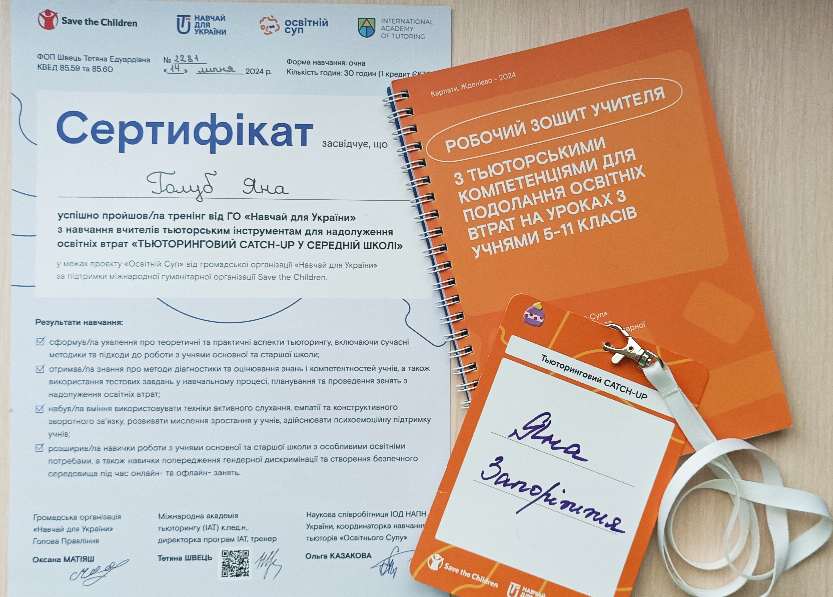 За результатами навчання учасники отримали сертифікати – і тепер зможуть впроваджувати практики catch-up під час своїх уроків та отримувати регулярні супервізійні зустрічі від тренерів-тьюторів проєкту «Освітній Суп».