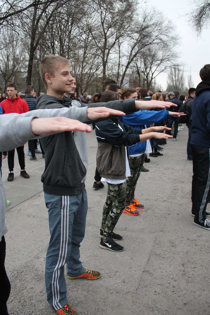 Також учні 8-В та 9-Б класів у супроводі керівника гуртка козацького бойового мистецтва «Спас» Бабенка Андрія Євгеновича долучилися до масової руханки в рамках Всесвітнього дня здоров’я, яка проходила на території комунального закладу "Запорізька обласна школа вищої спортивної майстерності" Запорізької обласної ради.