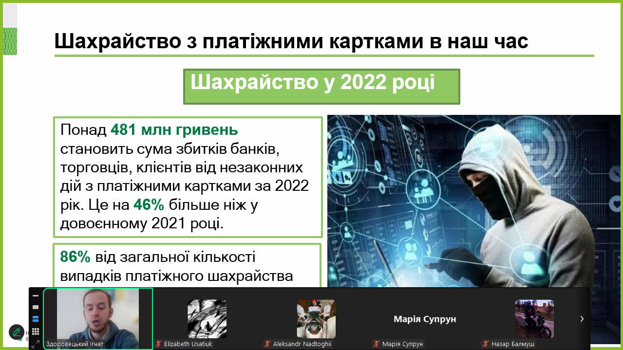 Основна мета заходу — навчити здобувачів освіти обачності при здійсненні фінансових операцій онлайн та захисту своїх особистих даних від шахраїв.