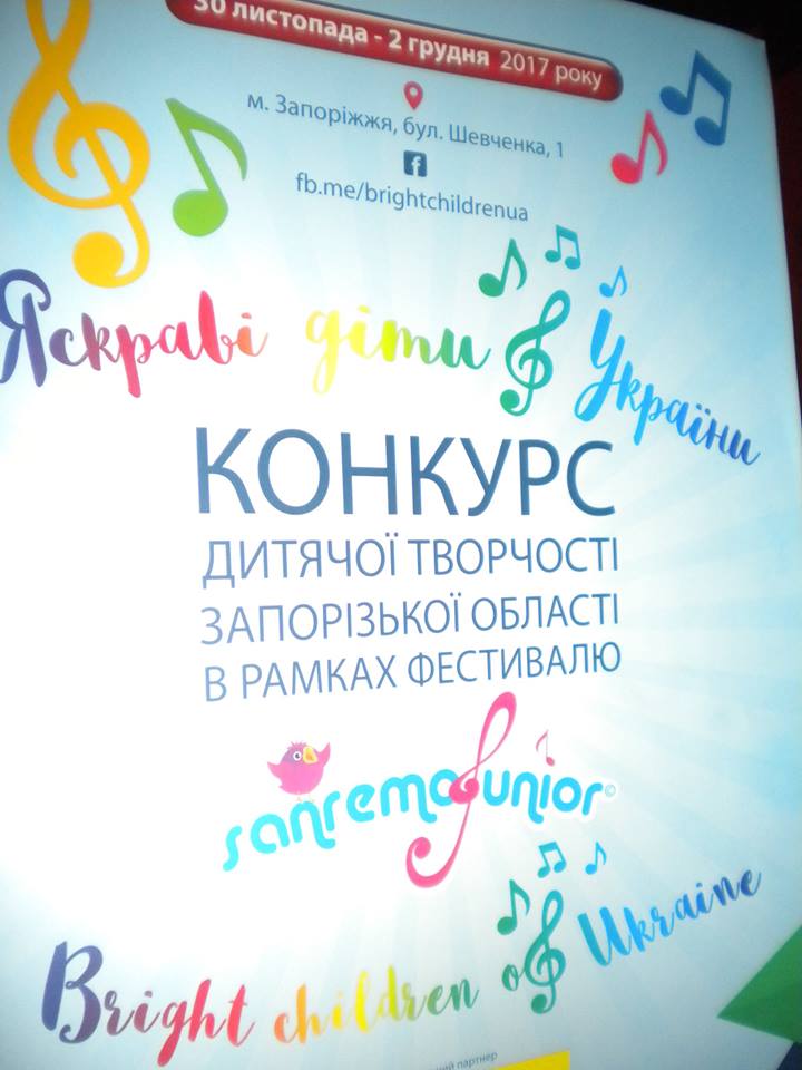 2 грудня 2017 року в палаці культури «Дніпроспецсталь» проходив регіональний етап Всеукраїнського конкурсу дитячої творчості «Яскраві діти України» в рамках Міжнародного фестивалю Sanremo junior.