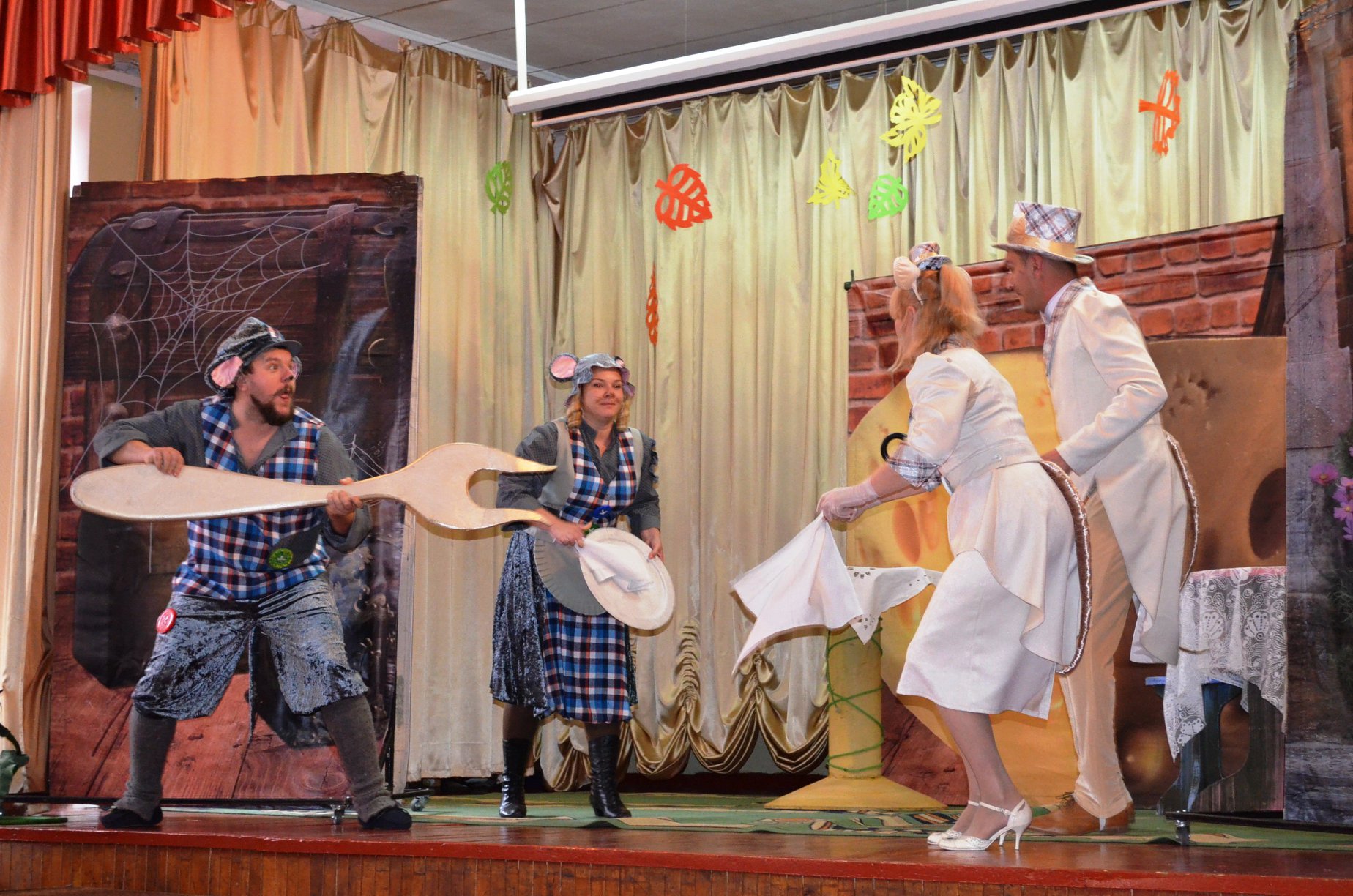 Історію мешканців невеличкої сироварні – двох сімей сірих та білих мишей, складнощі їхніх взаємовідносин і суперечки, цікавий образ Кота-Чарівника, який живе на горищі та залюбки допомагає юним мишкам примирити ворогуючих батьків, а також інші цікаві метаморфози майстерно і жваво передали під час гри на сцені актори Запорізького академічного обласного українського музично-драматичного театру імені В.Г. Магара.