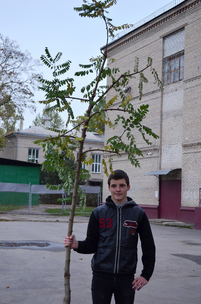 Миттєво зреагувала на запрошення отримати молоді дерева директорка Запорізької школи-інтернату «Козацький ліцей» Губіна Оксана Олександрівна - і привезла до навчального закладу 5 саджанців дубочків та рожеву акацію.