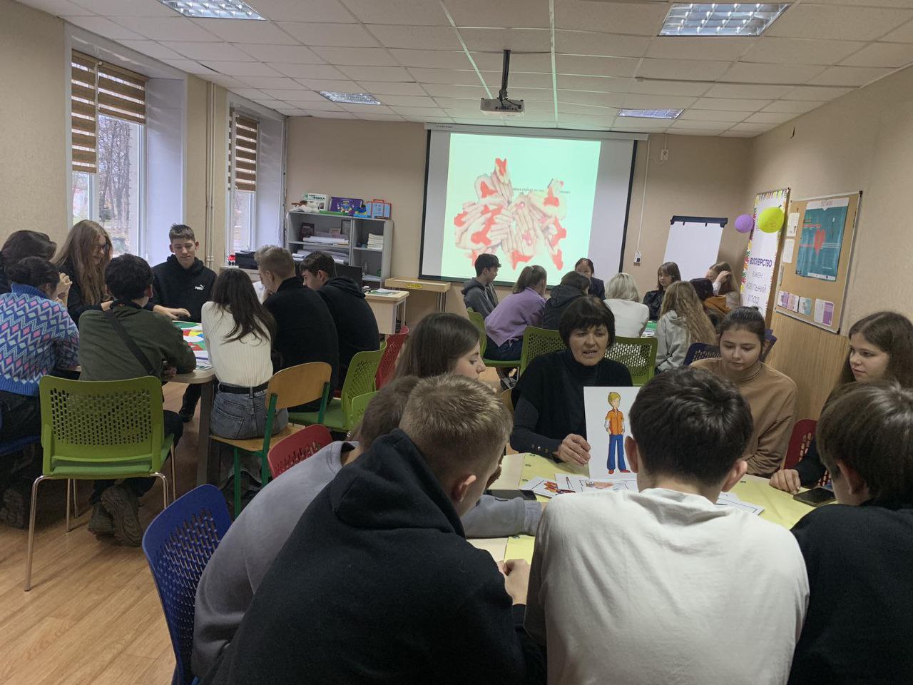Під час заняття ліцеїсти ставили запитання, які їх цікавили, оцінювали можливі ризики інфікування на прикладах життєвих ситуацій.