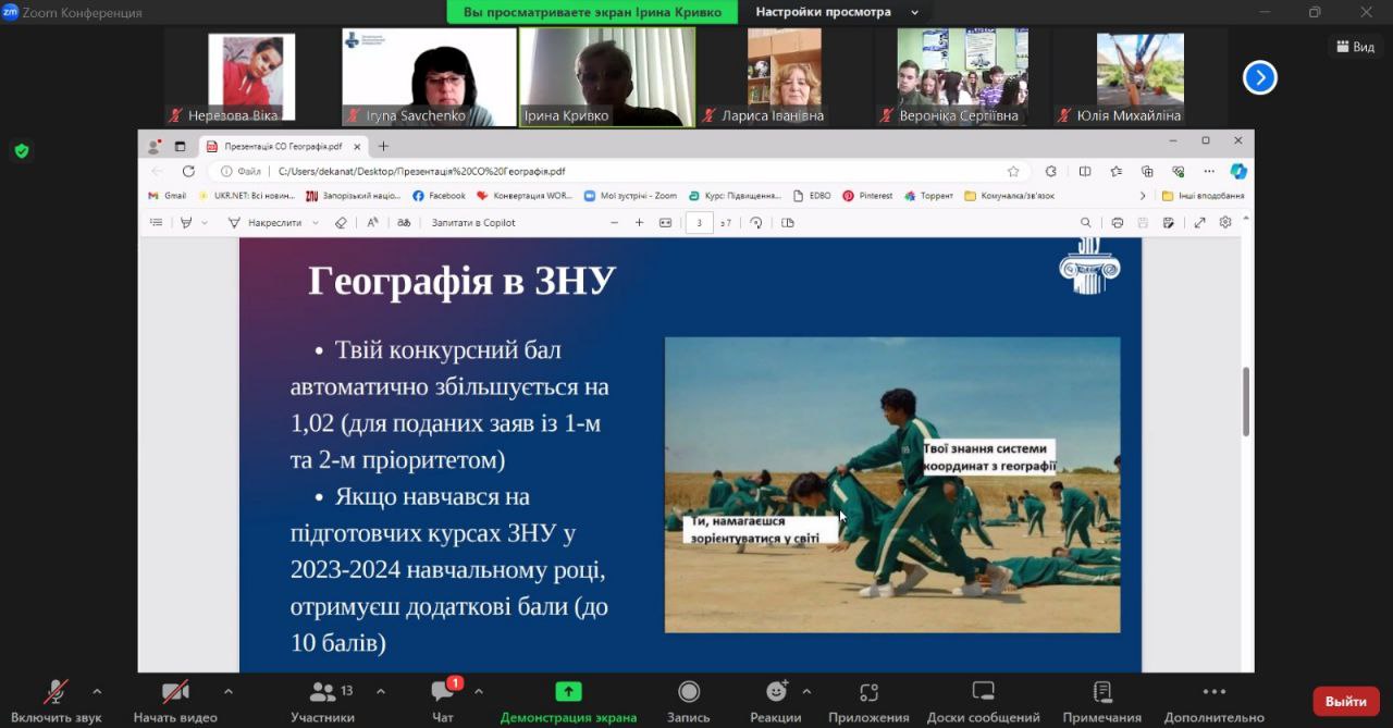 Окрему увагу Ірина Миколаївна Кривко приділила новій освітній програмі факультету: «Середня освіта. Географія», яка має особливу підтримку держави.