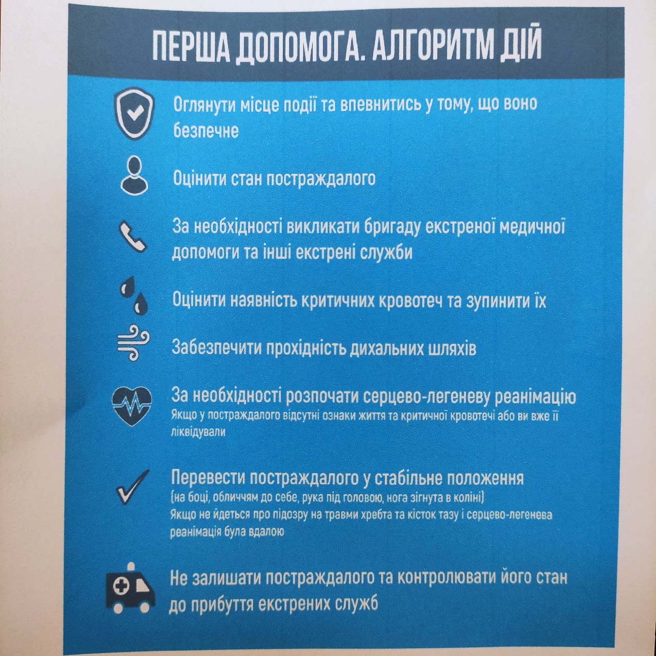 Теорію активно відпрацьовували під час практичних занять: училися оцінювати стан потерпілого і визначати, якої допомоги насамперед він (вона) потребує; відновлювали послідовність дій при серцево-легеневій реанімації та наданні домедичної допомоги при критичній кровотечі (притискання артерії; перев'язування й тампонування рани; використання підручних засобів); вчилися здійснювати евакуацію потерпілого. Також опановували навички поводження зі стрілецькою зброєю та познайомилися з видами вибухонебезпечних предметів і мін.
