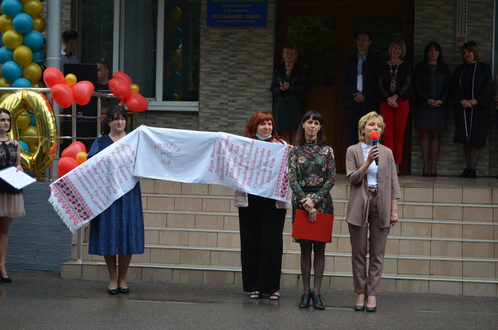 На згадку про себе випускники подарували «Козацькому ліцею» вишиті рушники зі своїми прізвищами та іменами – започаткували ще одну добру українську традицію.