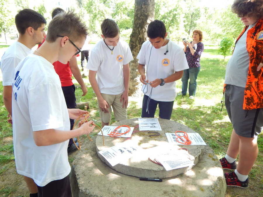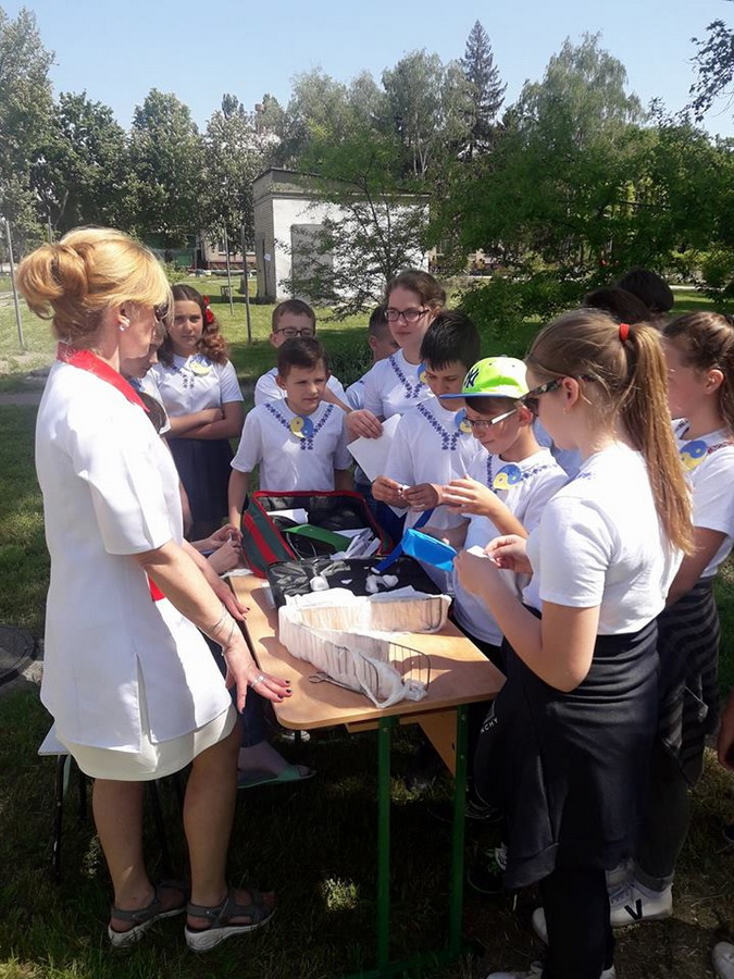 Діти під час проходження станцій «Медична», «Шкідливі та корисні гриби/ягоди», «Наші дії у надзвичайних ситуаціях», «Теорія і практика цивільної оборони», «Загадкова. Рятування потопаючого», «Небезпечні хімічні елементи», «Художня», «Туристична. Рятувальна мотузка», «Музична» виконували теоретичні та практичні завдання з надання першої долікарської допомоги потерпілим, застосування засобів індивідуального захисту і виконання правильних дій в НС.