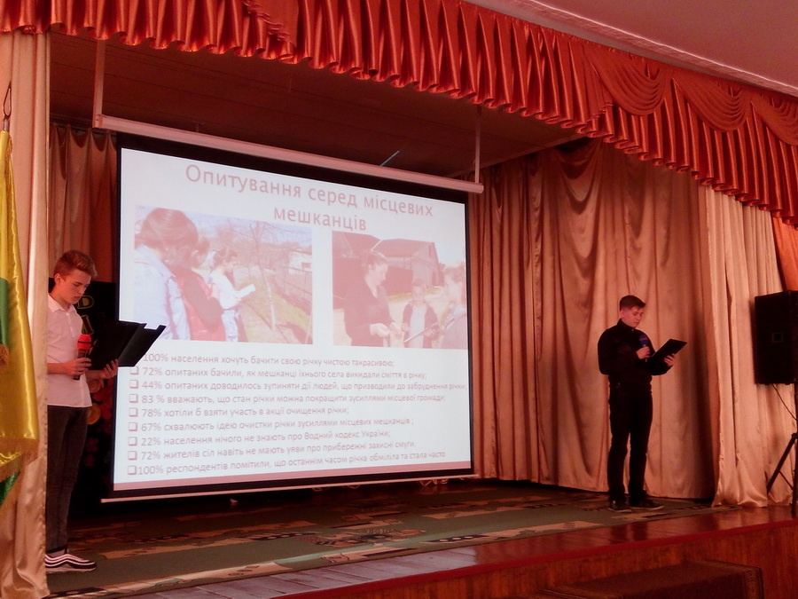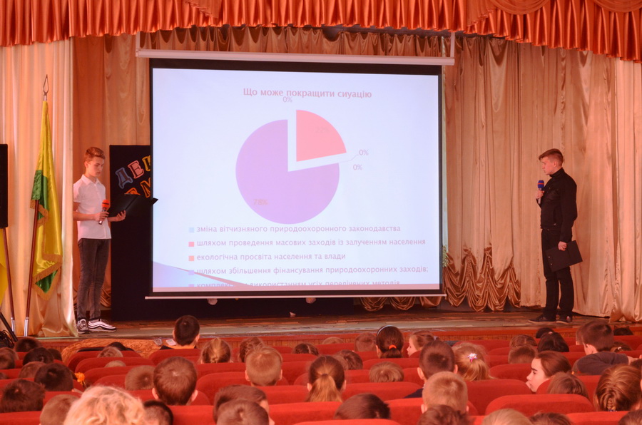 На загальношкільному заході «Краса і багатство зеленої планети залежить від нас!» до Міжнародного дня Землі Подорожній Ілля та Афанасьєв Олександр представили результати роботи над проектом, закликаючи усіх берегти природу, адже кожен із нас здатен зробити свій внесок. Для цього не потрібно багато часу та коштів. Головне правило - «НЕ ЗАШКОДЬ!».