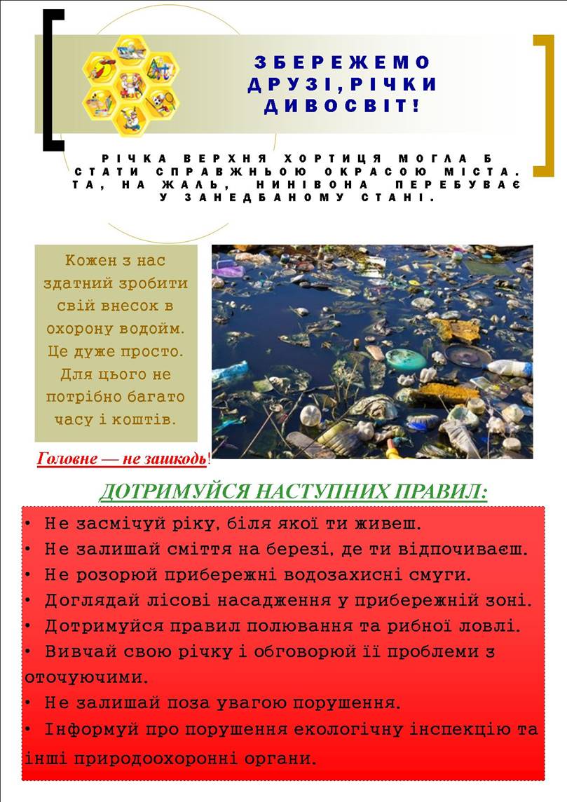 Ліцеїстами була розроблена екологічна листівка «Збережемо, друзі, річки дивосвіт», в якій вони закликають не бути байдужими до проблем водойми і дотримуватись нескладних правил поведінки в природі.