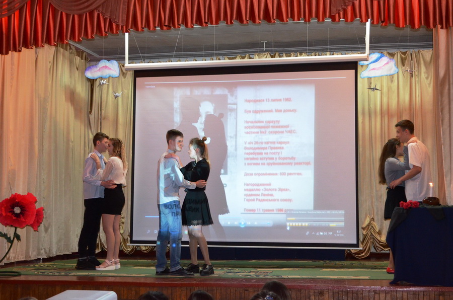 Захід із вшанування пам'яті загиблих героїв-ліквідаторів на Чорнобильській АЕС підготували учні 8-Б і 8-В класів.