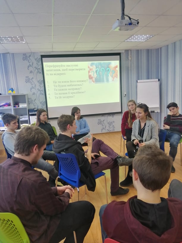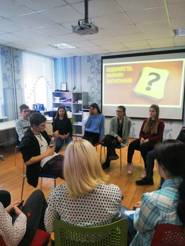 Підлітки активно працювали над темою «Закриті та відкриті запитання». Ліцеїсти вчилися майстерності ставити питання, знаходити різницю між закритими і відкритими запитаннями, дізнавалися про їхні переваги та недоліки, а під час роботи в парах відпрацьовували практичні навички.