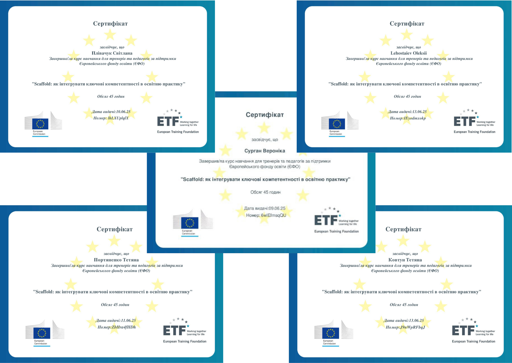 З 03.06. по 13.06.2025 року педагоги «Козацького ліцею» взяли активну участь в очно-дистанційному тренінгу за програмою «SCAFFOLD: ЯК ІНТЕГРУВАТИ КЛЮЧОВІ КОМПЕТЕНТНОСТІ В ОСВІТНЮ ПРАКТИКУ» в межах реалізації пілотного впровадження Державного стандарту профільної середньої освіти.