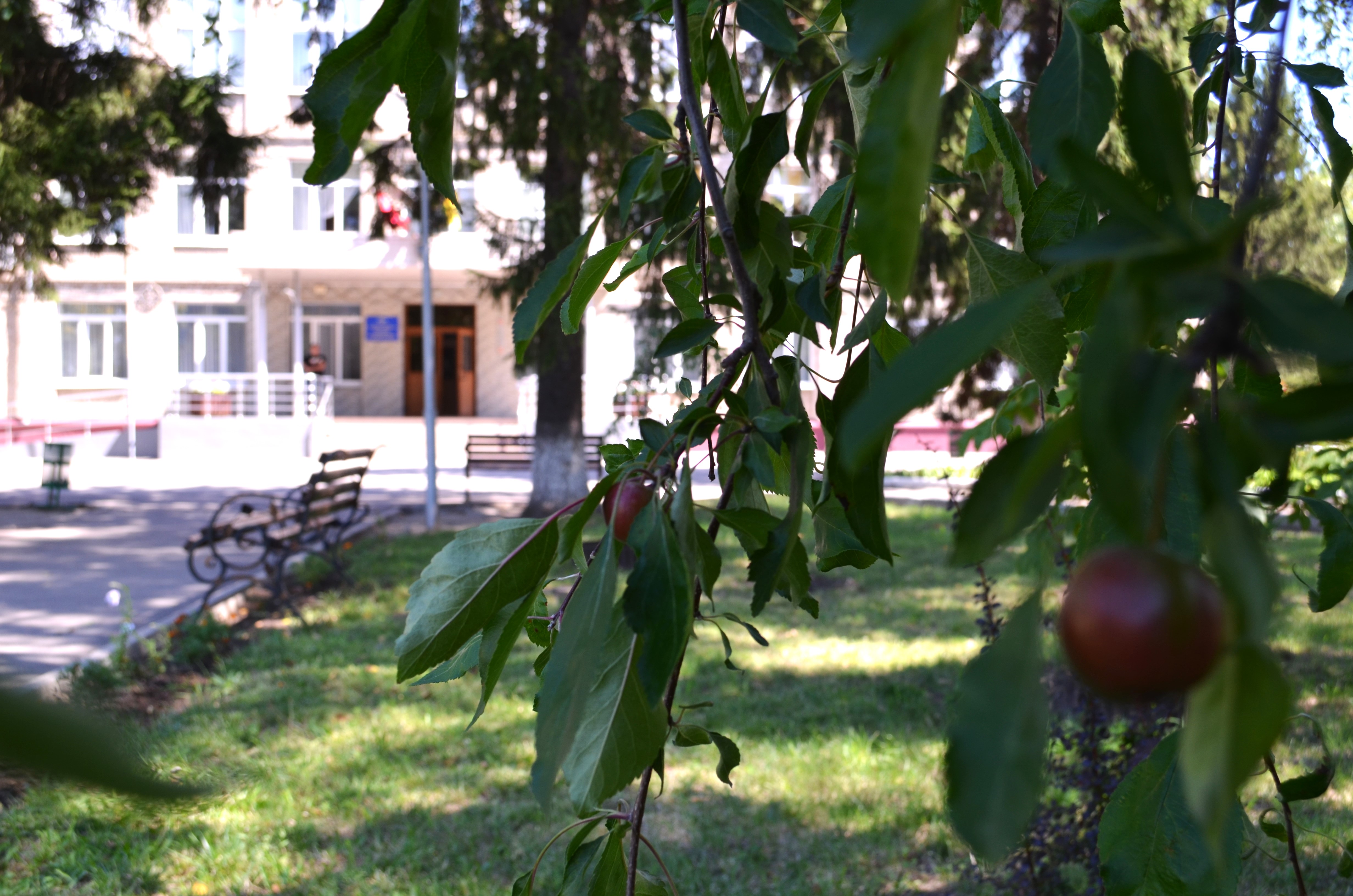 А скільки на території шкільної садиби дивовижної краси дерев, кущів, трав, що тішать широким спектром відтінків зеленого! Очей не відвести!