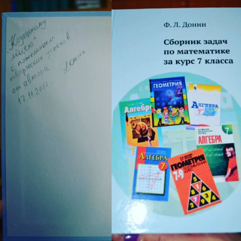 На згадку про зустріч гість подарував «Козацькому ліцею» свою авторську книгу «Збірник задач з математики за курс 7 класу».
