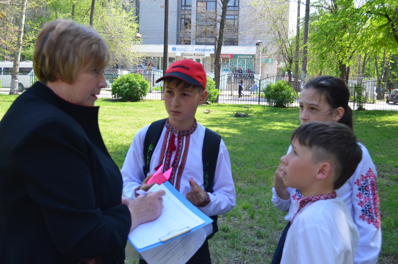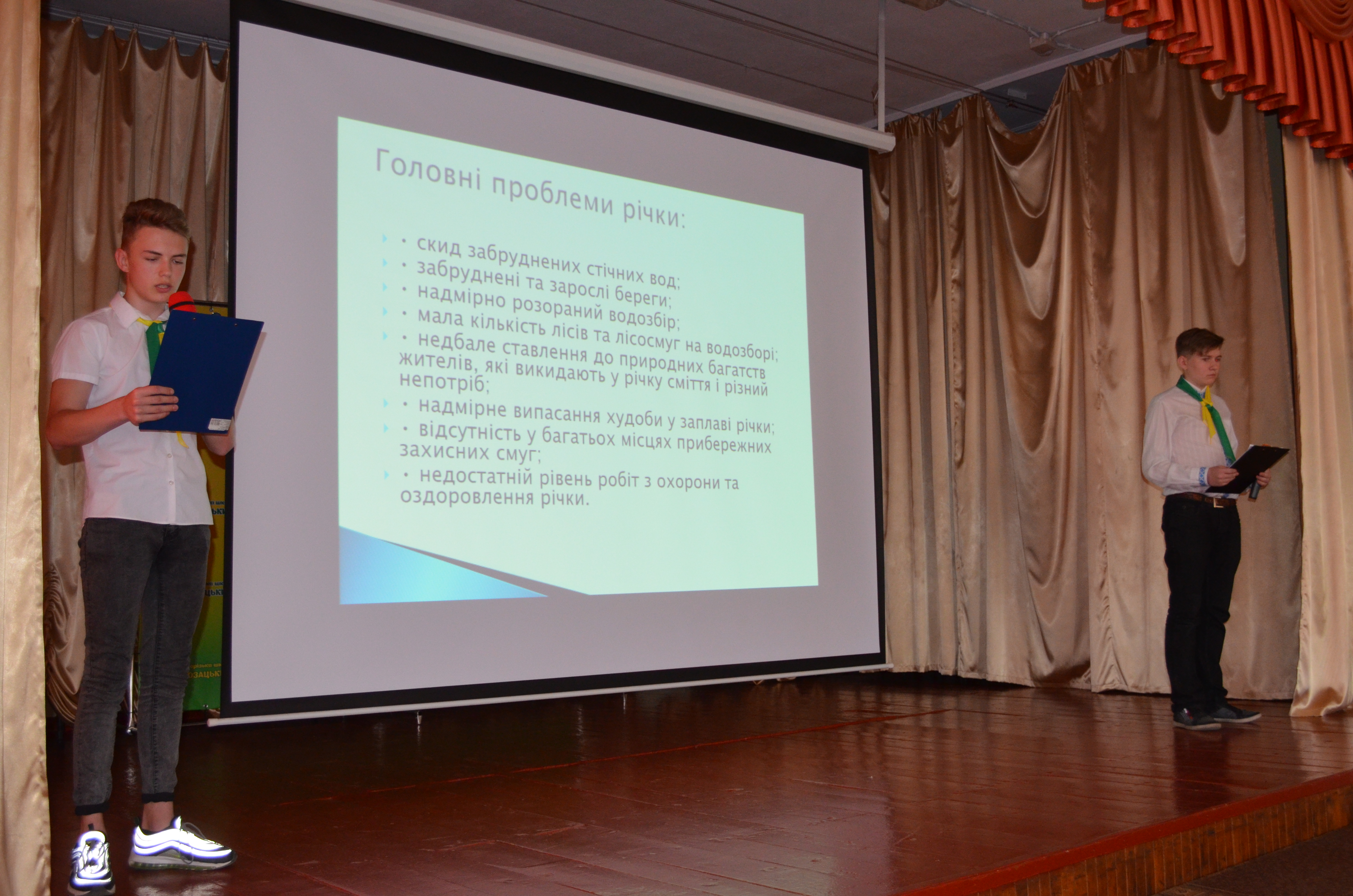 Після презентації роботи над проектами «Шляхи збереження та вивчення річок» діти відправились на подвір’я школи-інтернату для участі в квестовій програмі «Що ти знаєш про малі річки?», який підготувала для юних натуралістів-дослідників методист центру еколого-натуралістичної творчості учнівської молоді Мішкіна Раїса Борисівна.