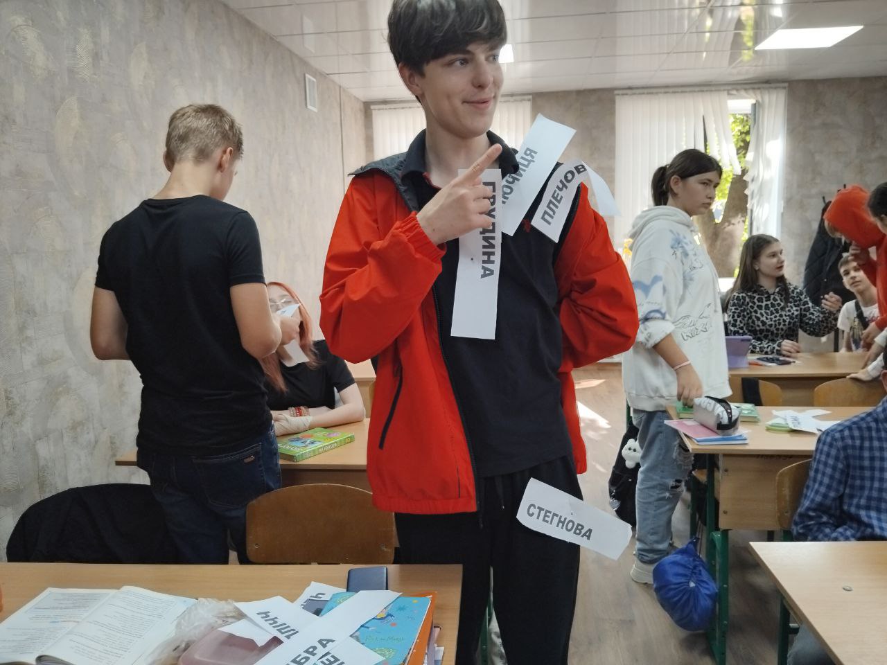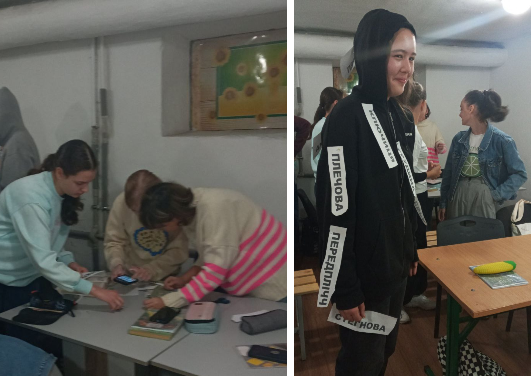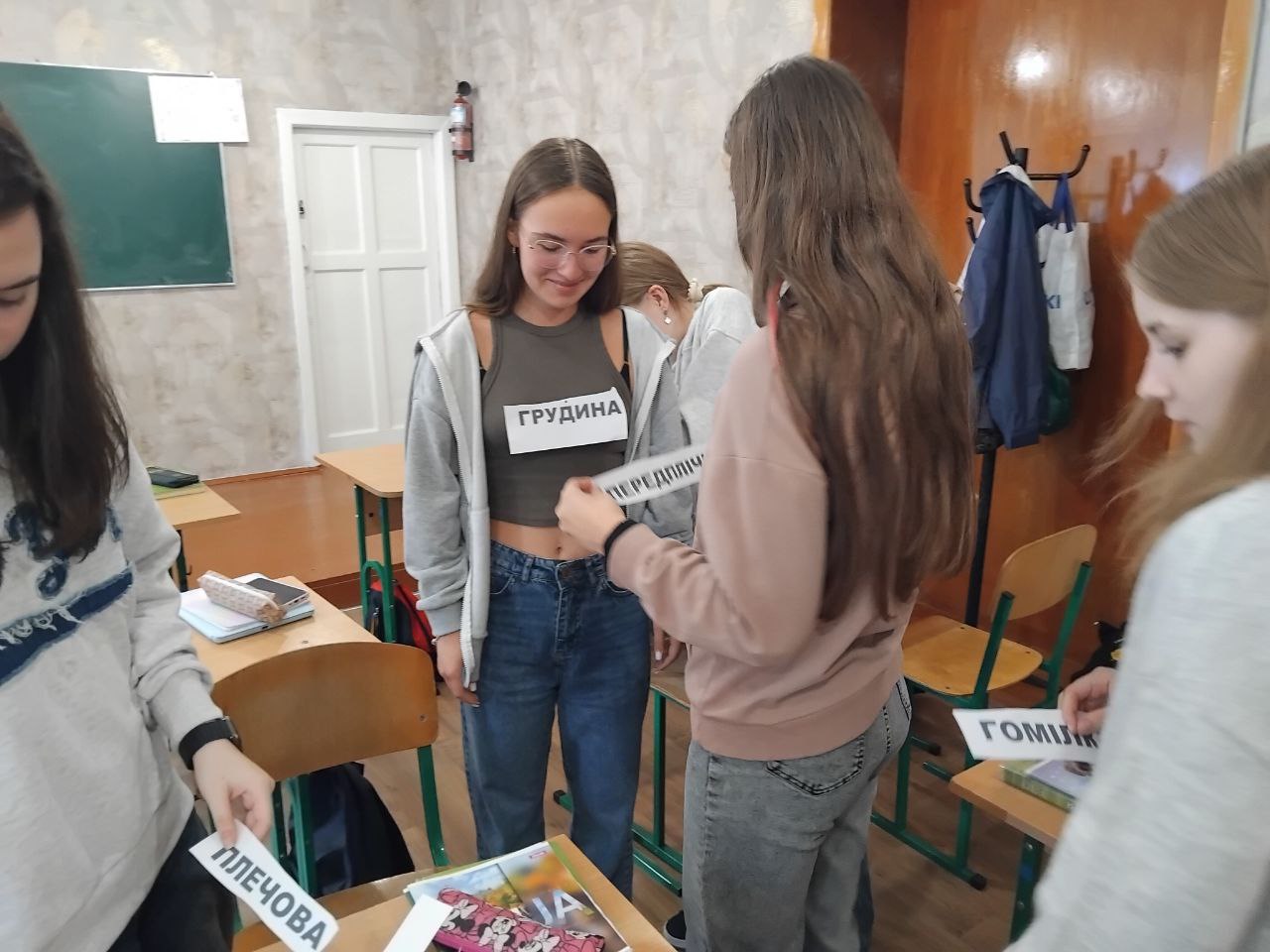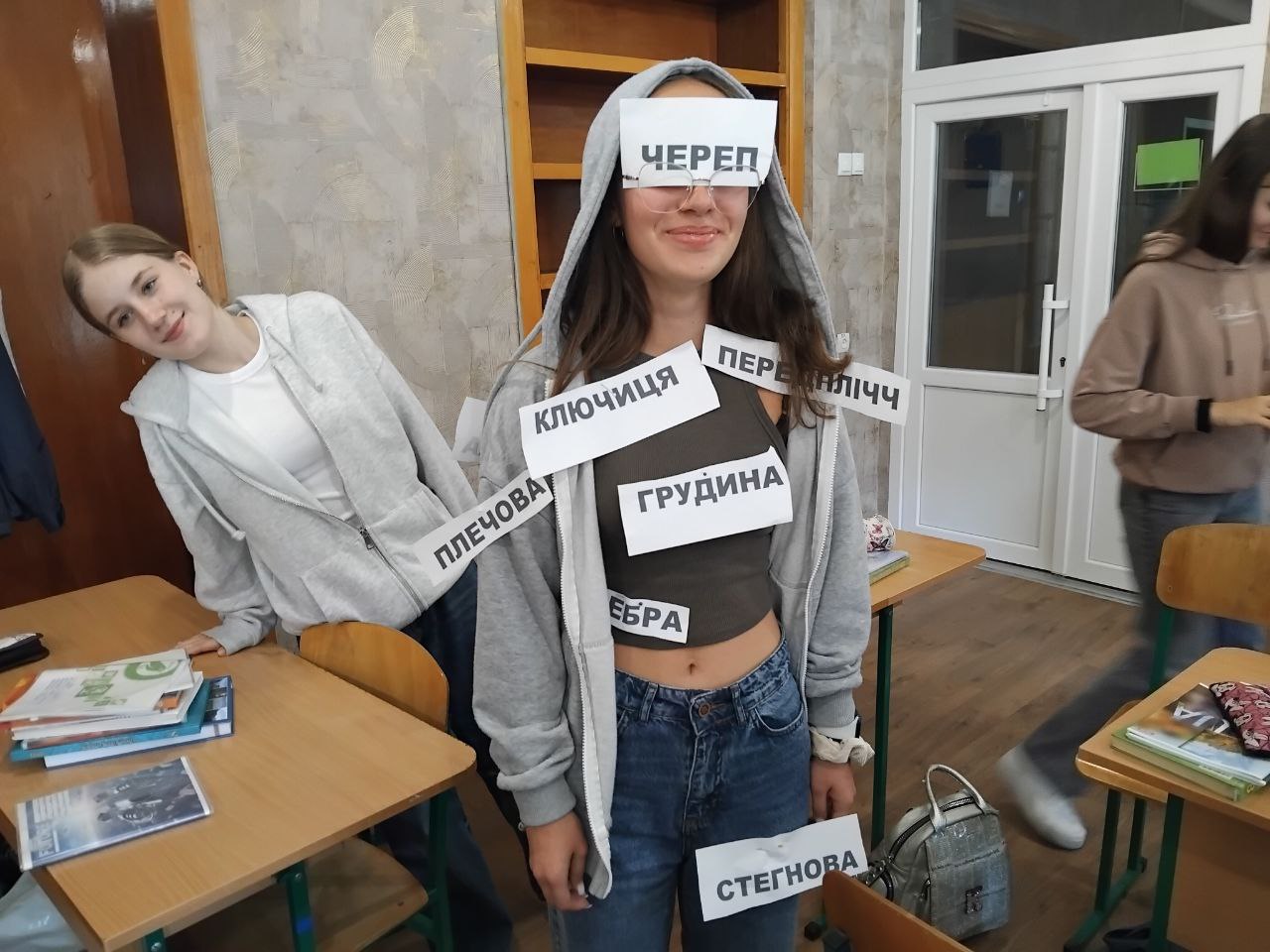 Дітям було запропоновано вправу «Знайди місце кістки». Це завдання виконували швидко, весело та вправно, кріплячи аркуші з назвами там, де розміщена та чи інша кістка на «живих манекенах» – своїх однокласниках.