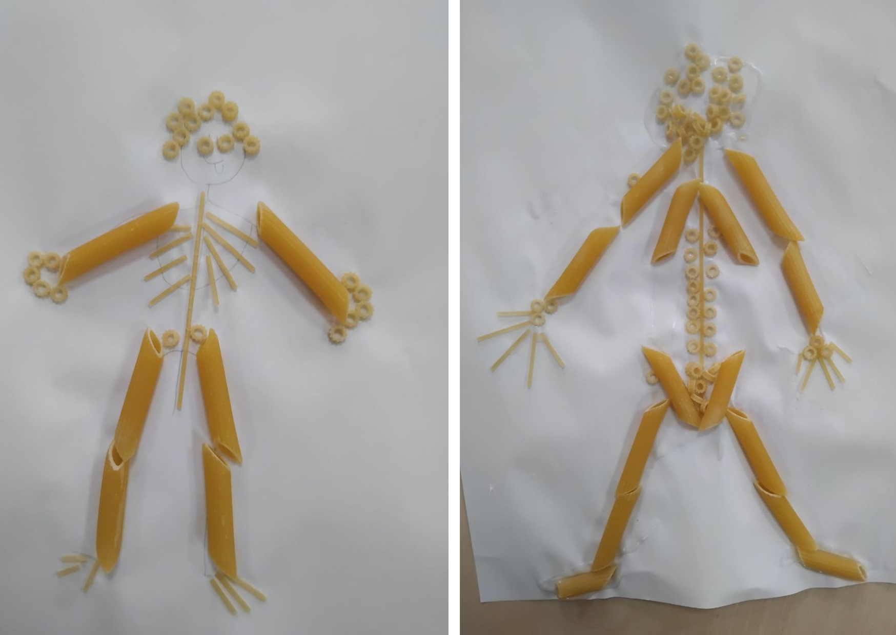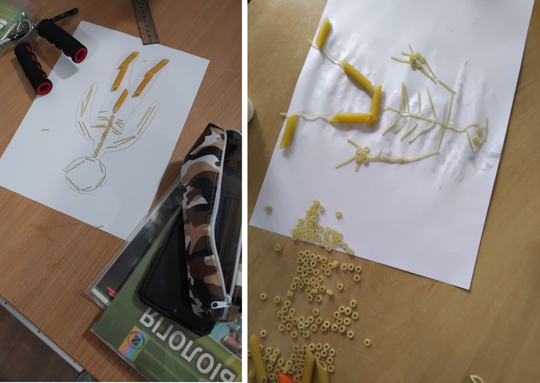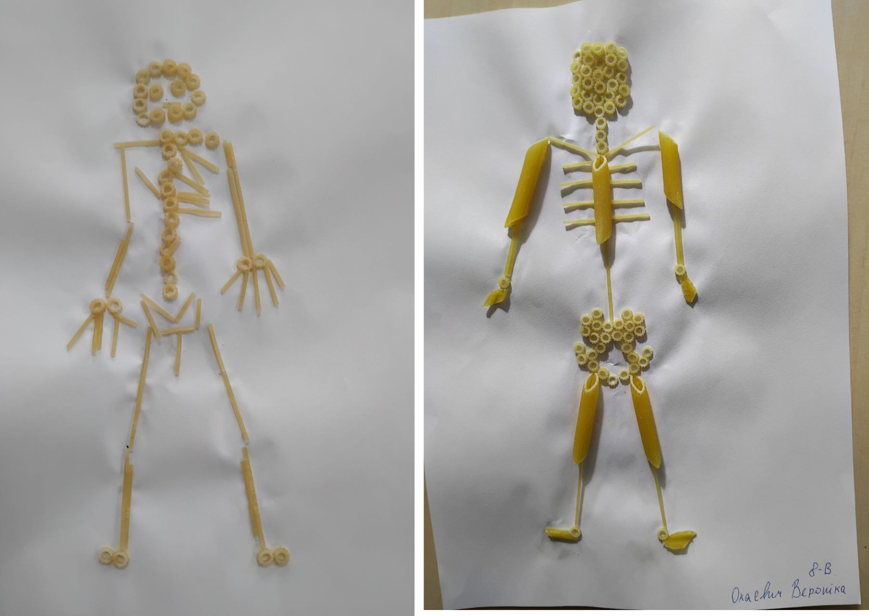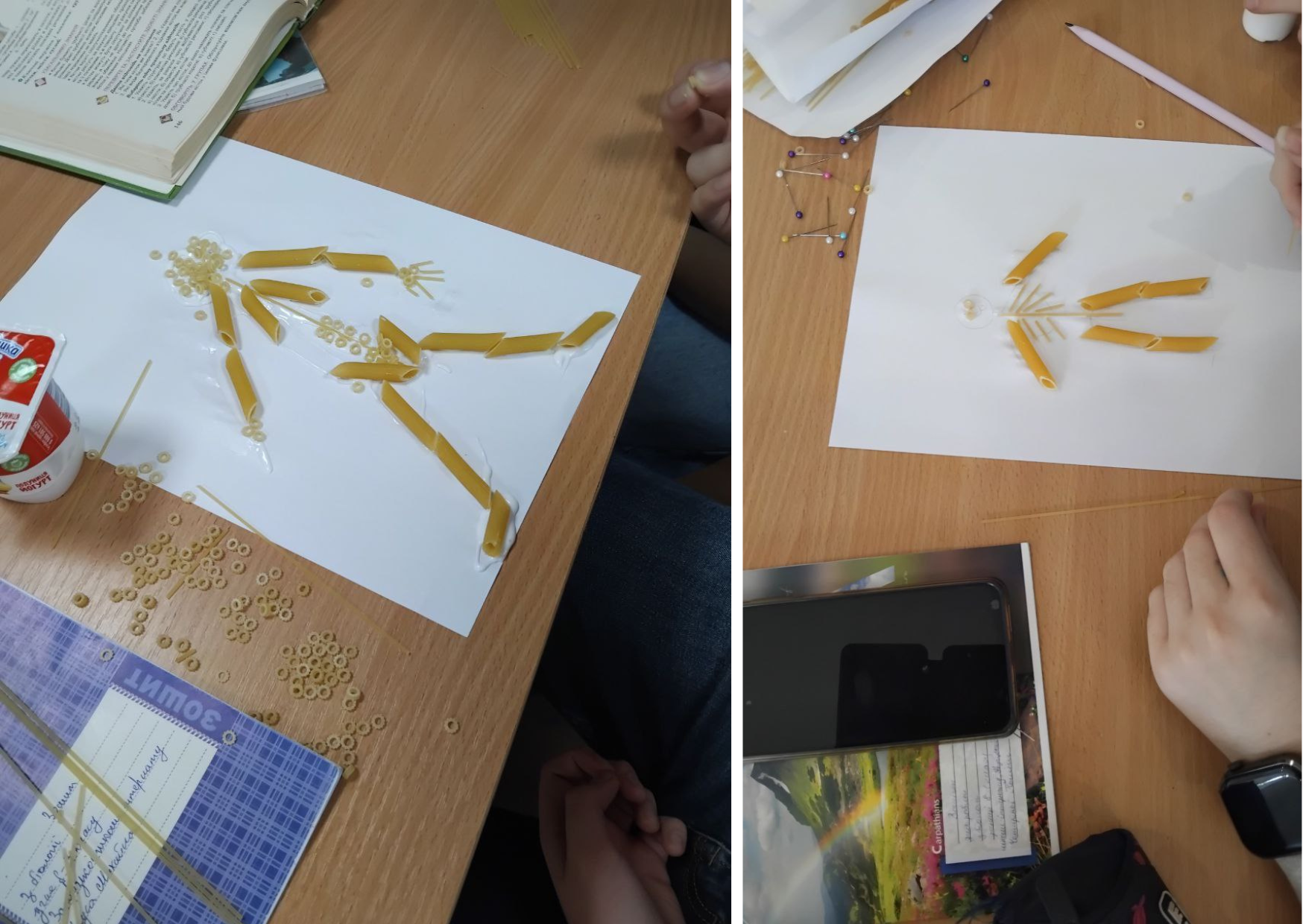 Наступне завдання – розробляли модель скелету людини із запропонованого матеріалу. Ним стали макарони. Наскільки висока віртуозність і багата фантазія у обдарованих ліцеїстів зможете оцінити, переглянувши світлини.