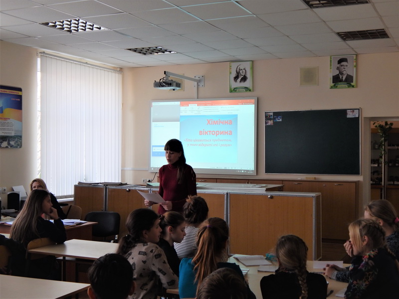 17 листопада 2017 року «Хімічну вікторину» між ліцеїстами двох команд «Нейтрон» (учні 7-Б і 8-Б класів) і «Електрон» (учні 7-А та 8-А класів) провела вчитель хімії Логінова Інна Олександрівна. Педагог вдало підібрала питання та підготувала цікаві завдання для кожного з етапів вікторини.