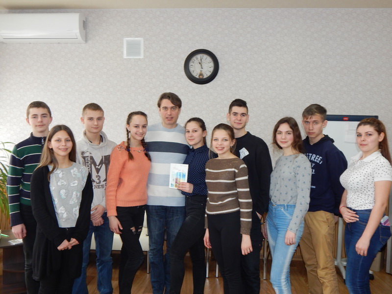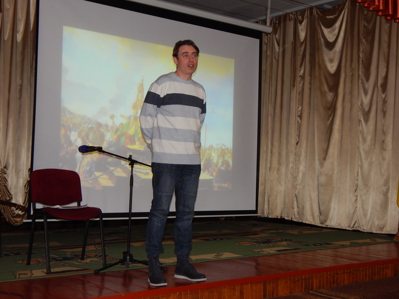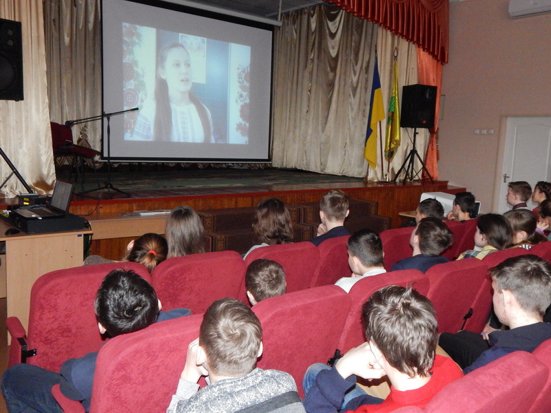 У актовій залі, де зібралися учні 8-11-х класів та їхні педагоги, розпочалося знайомство з митцем.