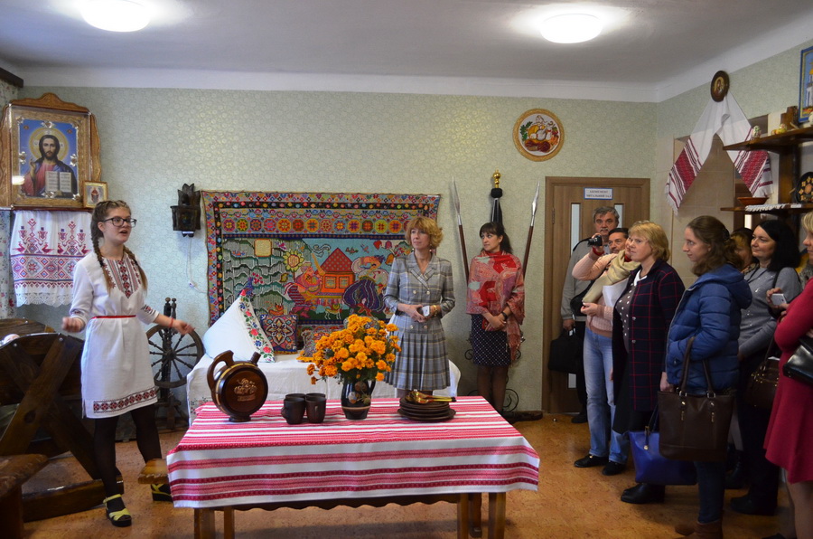 «Так як наш освітній заклад є козацьким, то вирішили розпочати роботу над відродженням та популяризацією козацької валеології - тобто спільними зусиллями облаштували зупинки-станції екостежини такі, як: «Козацька хата», «Народні промисли», «Ремесла», «Козацька кіннота», «Криниця», «Сонячний санаторій», «Зелена аптека», «Вітамінград», «Польова кухня» та «Бойовий полігон». Навчально-пізнавальні екскурсії усіма станціями проводять наші учні. А на зупинці «Козацька хата» гідом для вас буду я», - саме такими словами розпочала екскурсію українською хатою-музеєм Еліна.