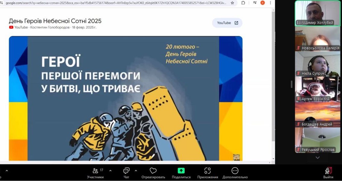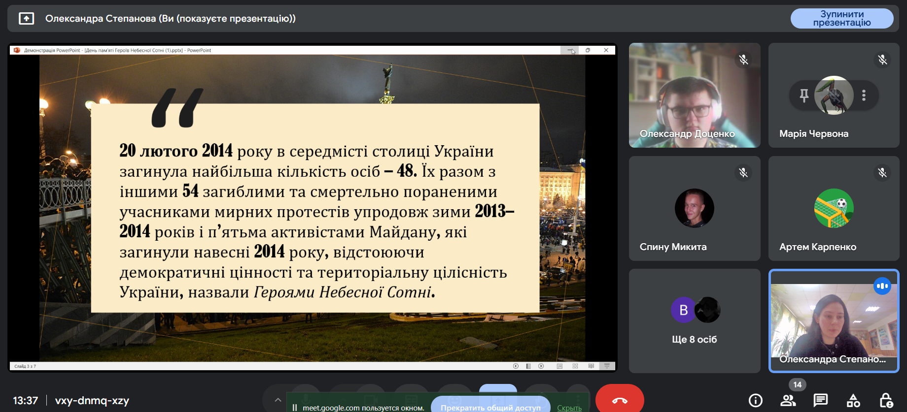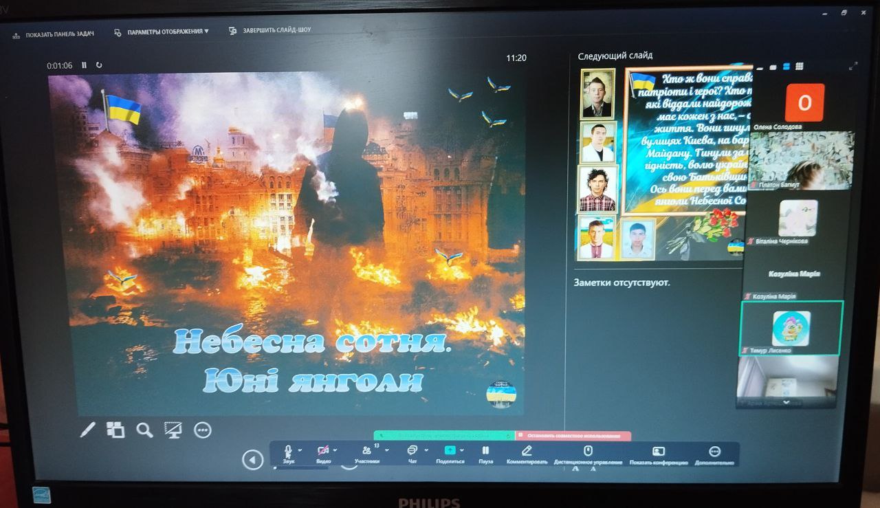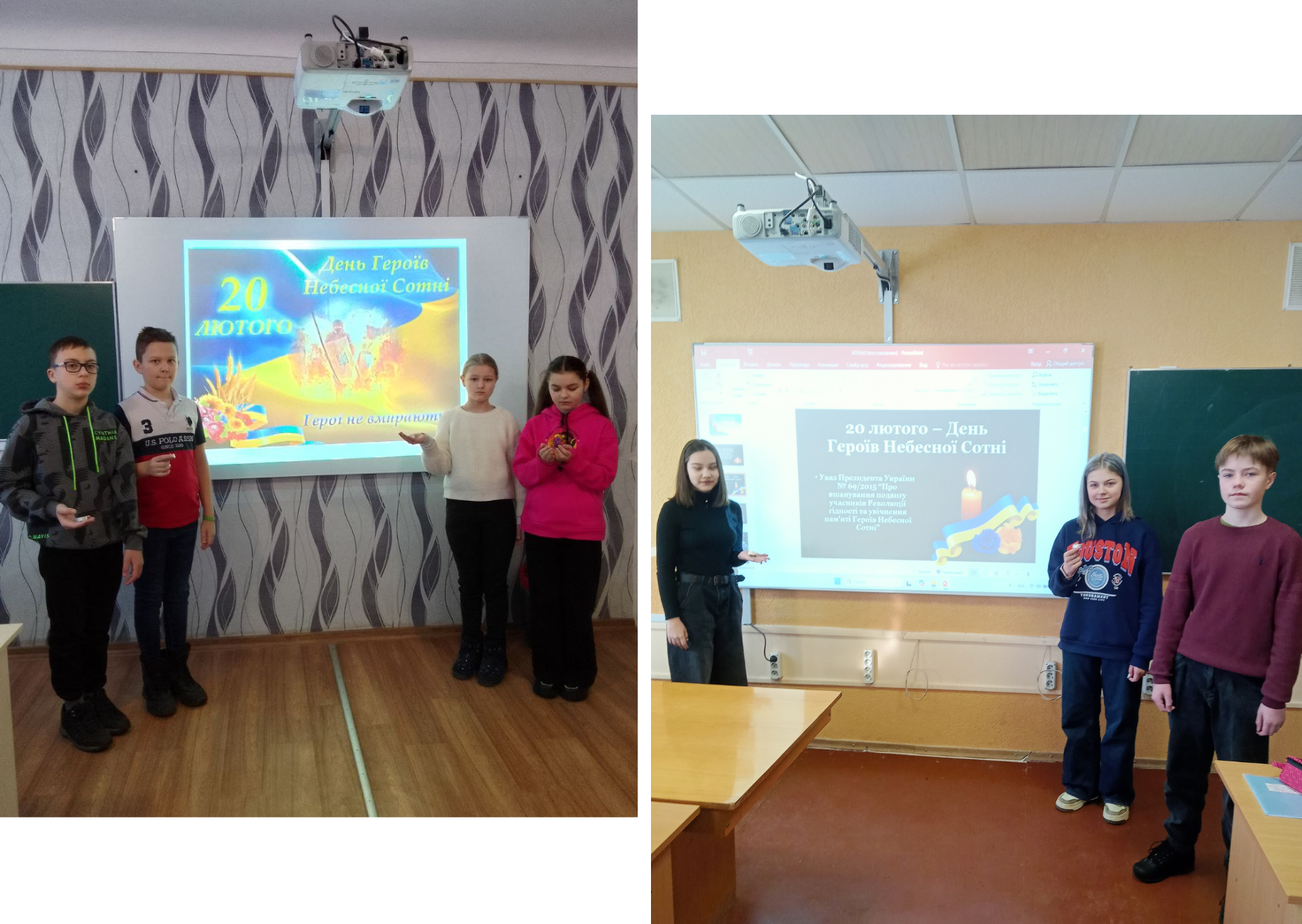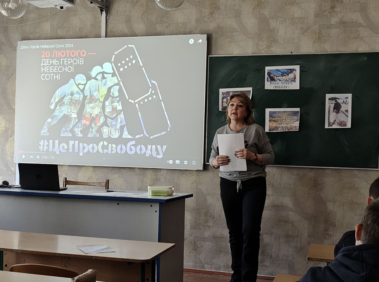 Під час тематичних класних заходів здобувачі освіти переглянули тематичні відеоролики, згадували події Революції Гідності 2013-2014 років для сучасної історії країни.