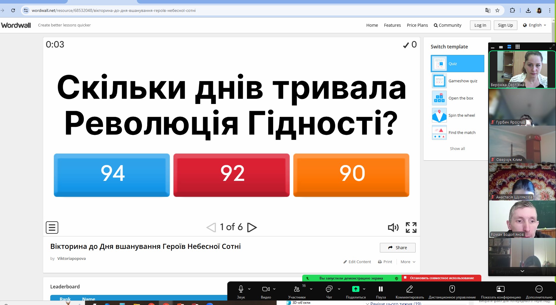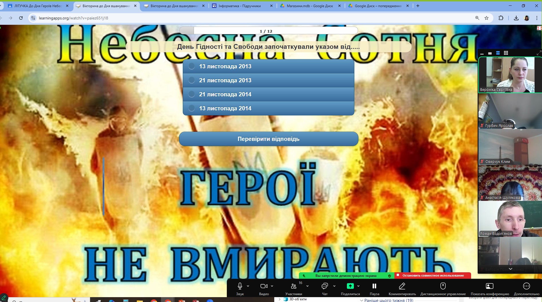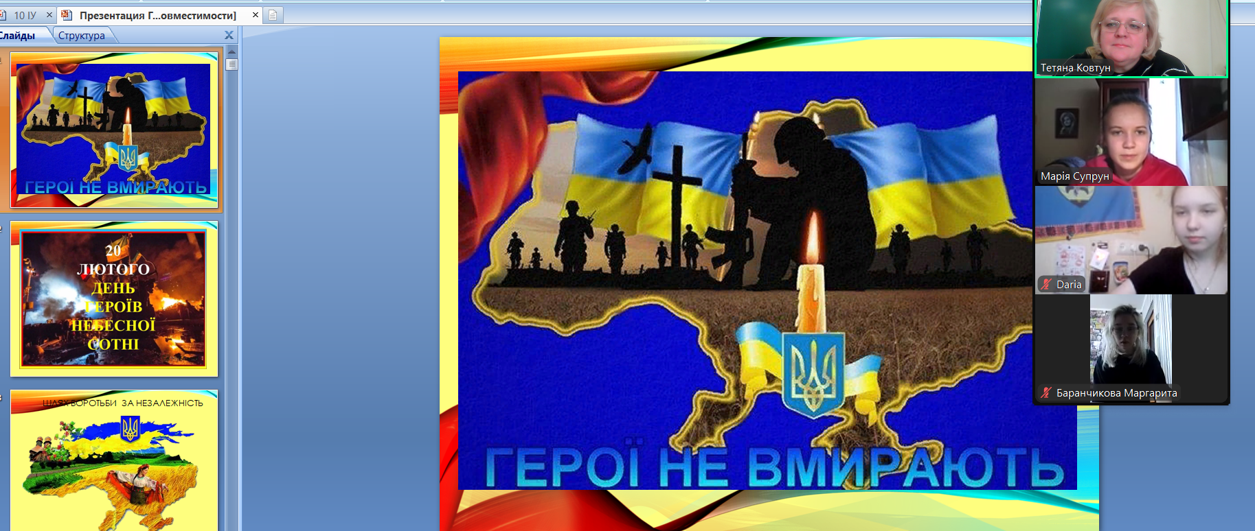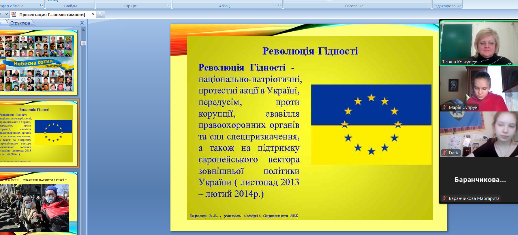 Під час тематичних класних заходів здобувачі освіти переглянули тематичні відеоролики, згадували події Революції Гідності 2013-2014 років для сучасної історії країни.