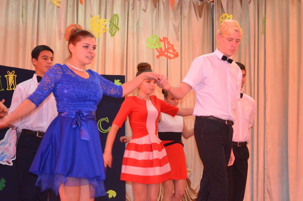 А в справжньому осінньому вальсі закружляли, педагогів «Козацького ліцею» з Днем працівників освіти привітали учні 9-11-х класів.