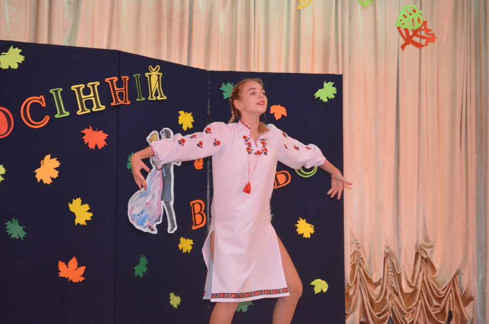 Ще одним доказом того, що осінь є порою для романтиків і творчих людей, став виступ на святі прекрасної декламаторки Габбе Марі з поезією «В осінньому вальсі».