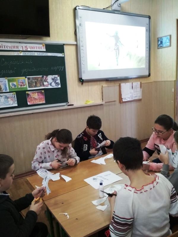 Учні 6-В класу працювали під керівництвом педагога-наставниці Лисенко Ірини Миколаївни у техніці традиційної української витинанки - робили мереживних жайворонків.