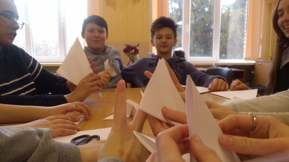 Майстер-клас із виготовлення пташок, вісників весни, у 7-В класі ліцею у техніці оригамі провела вихователь Кондратьєва Катерина Євгенівна.