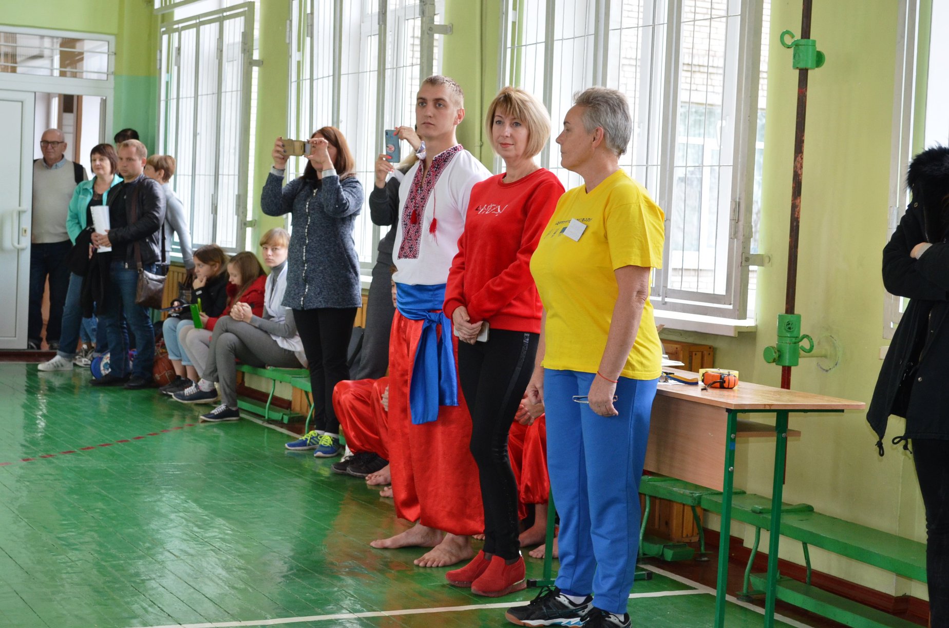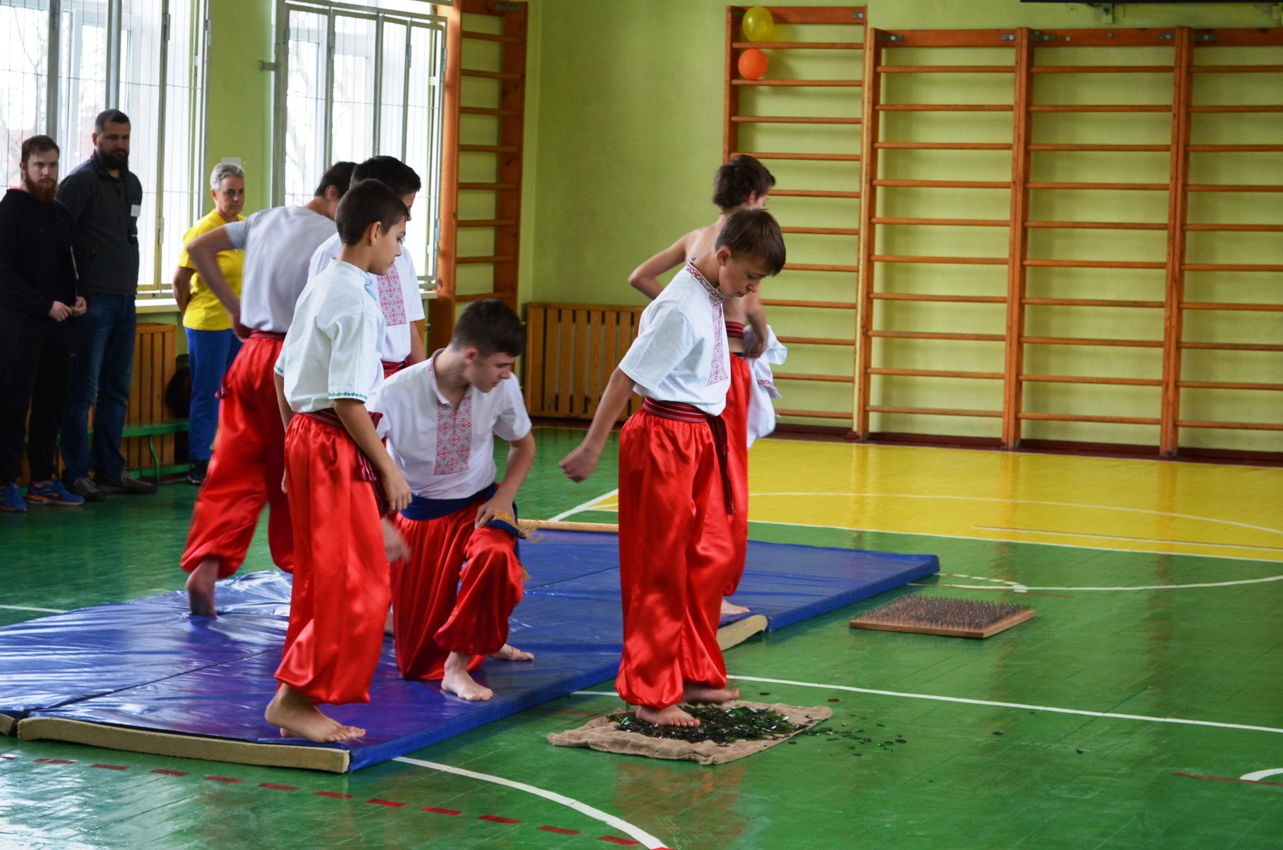 Гостинний козацький заклад радо зустрічав юних спортсменів і спортсменок, тренерів, вчителів фізичної культури та поважне журі колоритним ефектним показовим виступом від вихованців гуртка козацького бойового рукопашу «Спас».