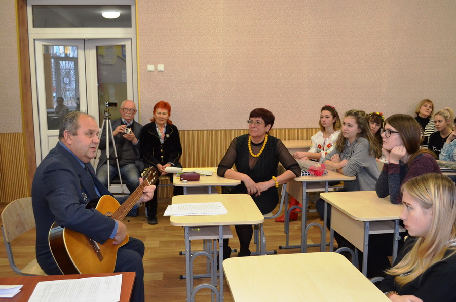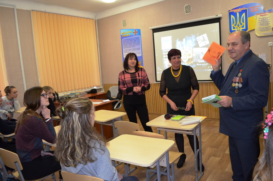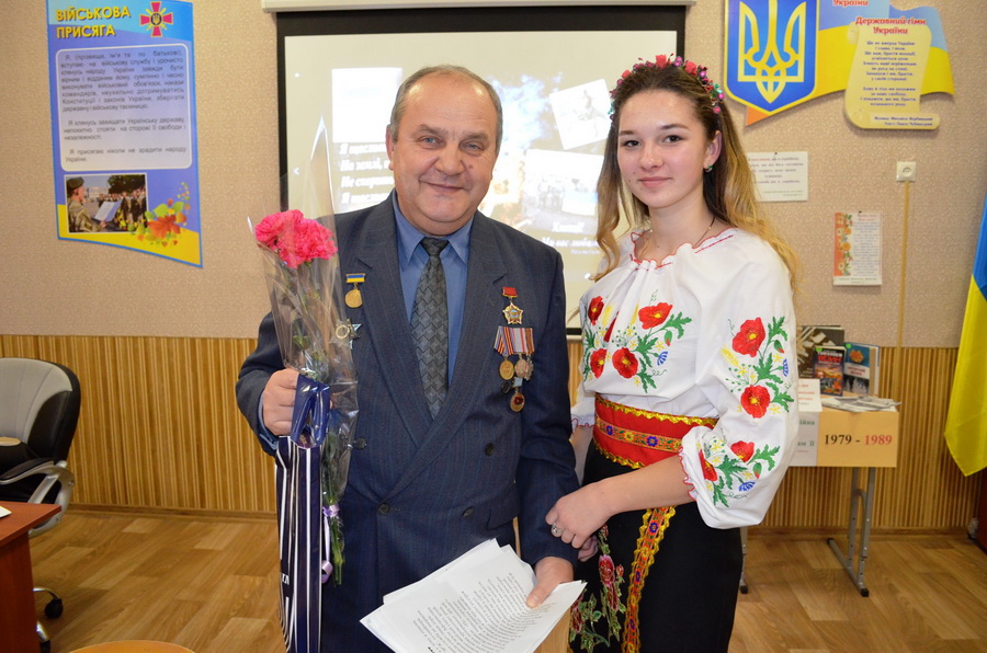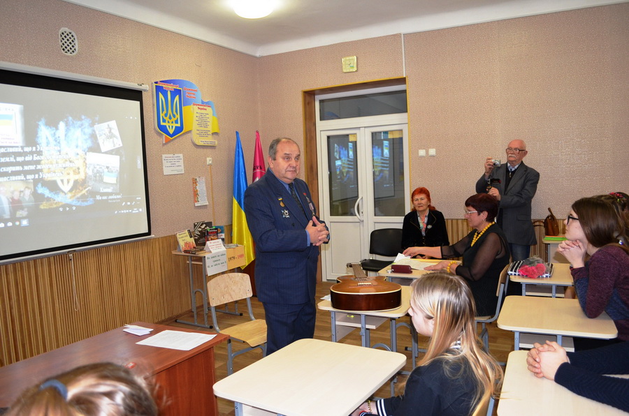 На Урок пам’яті було запрошено почесних гостей, серед яких учасник бойових дій в Афганістані Шпирко Володимир Григорович. Ветеран-афганець розказав про події тих страшних часів, поділився власними спогадами і думками… Зачитав свою авторську поезію. А коли взяв гітару до рук, то важко було втримати сльози…