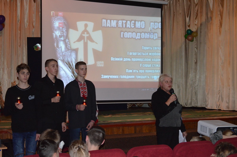 Юнаки-десятикласники допомогли пригадати страшні болючі сторінки історії 1932-1933 років - геноцид проти українського народу, - які у пам’яті кожного закарбувались як скорботна дата, біль і сум за померлими від штучного масового голоду, організованого керівництвом ВКП(б) та урядом СРСР.